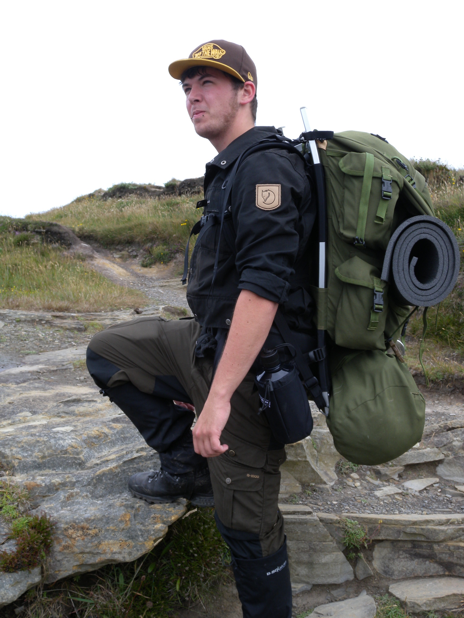 Dann Hab ich noch einen gescheiten trekkingrucksack. Und zwar ein Haglövs Alaska lastenkraxe, das heist Sichtbares Aussengestell aus aluminium mit grünem Packsack ( pu beschichtung innen löst sich ab ) diese rucksäcke sind super selten zu bekommen. Mit dem hab ich schon locker 28 kg auf strecke getragen. Wirlkich wahnsinns geiles ding. Geb ich nur ab weil ich einen neuen bekommen habe. Für die kraxe will ich noch 180 vhb haben. Auf dem bild sieht man den Rucksack und die Fjällräven hosen in "action" das andere bild ist die Traverse hose.