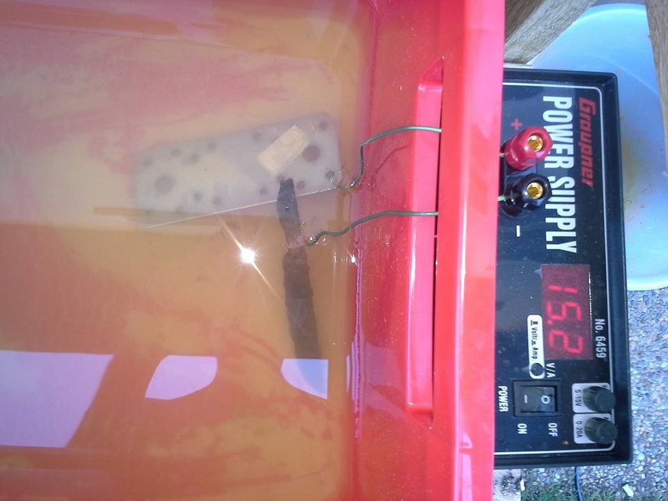 hab da mal eine frage zur elektrolyse hab mir ein netzteil gekauft mit 5-15V und 0-20 Ampere hatte ein altes messer ca 10 Std im bad man erkennt dass sich der rost langsam aber sicher löst die bläschen steigen aber nur an der verbindung(Kupferdraht) zum reinigenden gegenstand auf trotzdem kommt mir der prozess etwas langsam vor kann es sein dass die stromstärke zu schwach ist oder evtl die lösung nicht passt ?hab bei 10 Liter wasser 2 Esslöffel Backpulver zugegeben die opferanode ist ein edelstahlteil.mfg