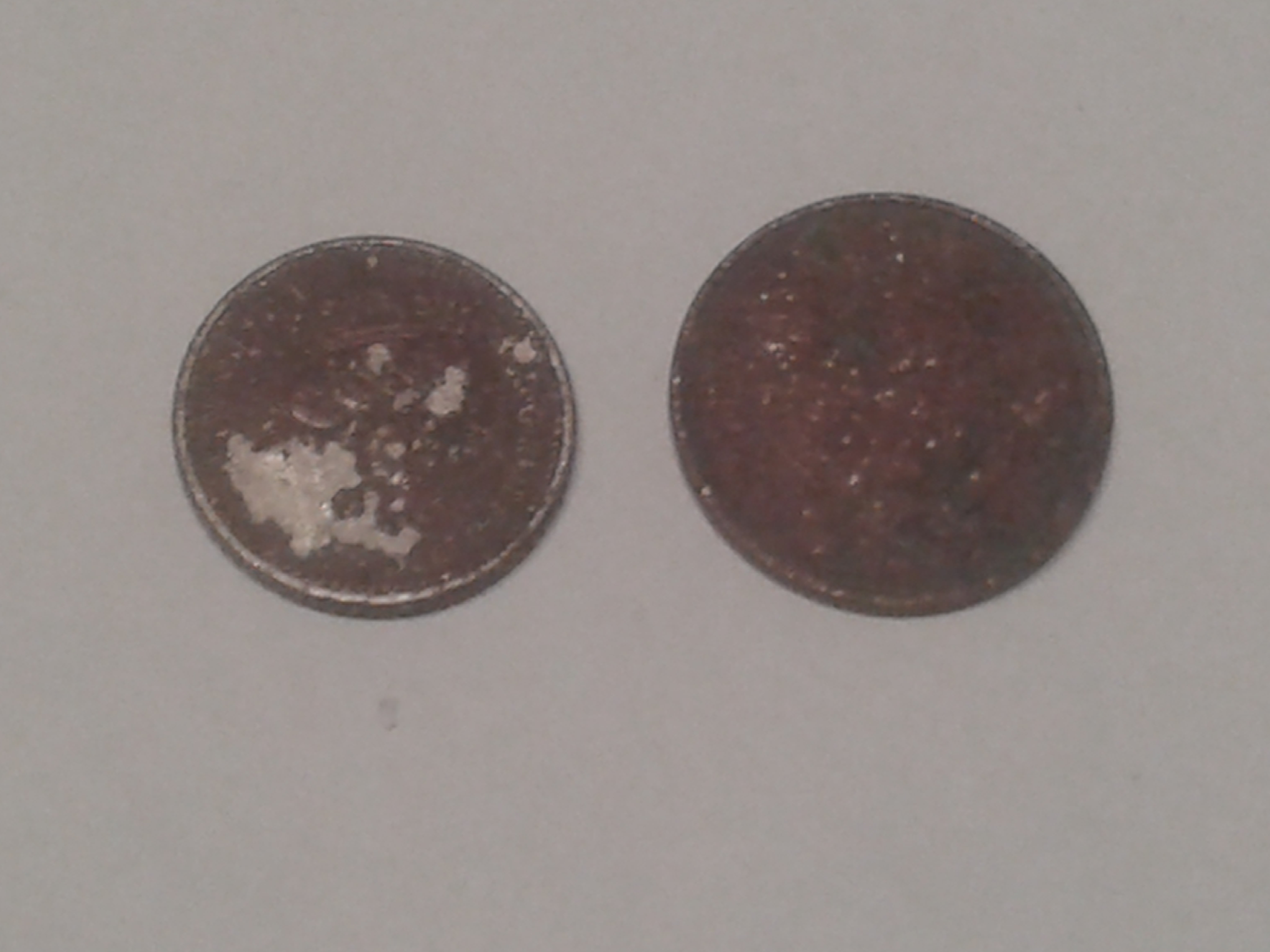 Hier mal zwei Münzen, so wie sie aus dem Sand kommen.