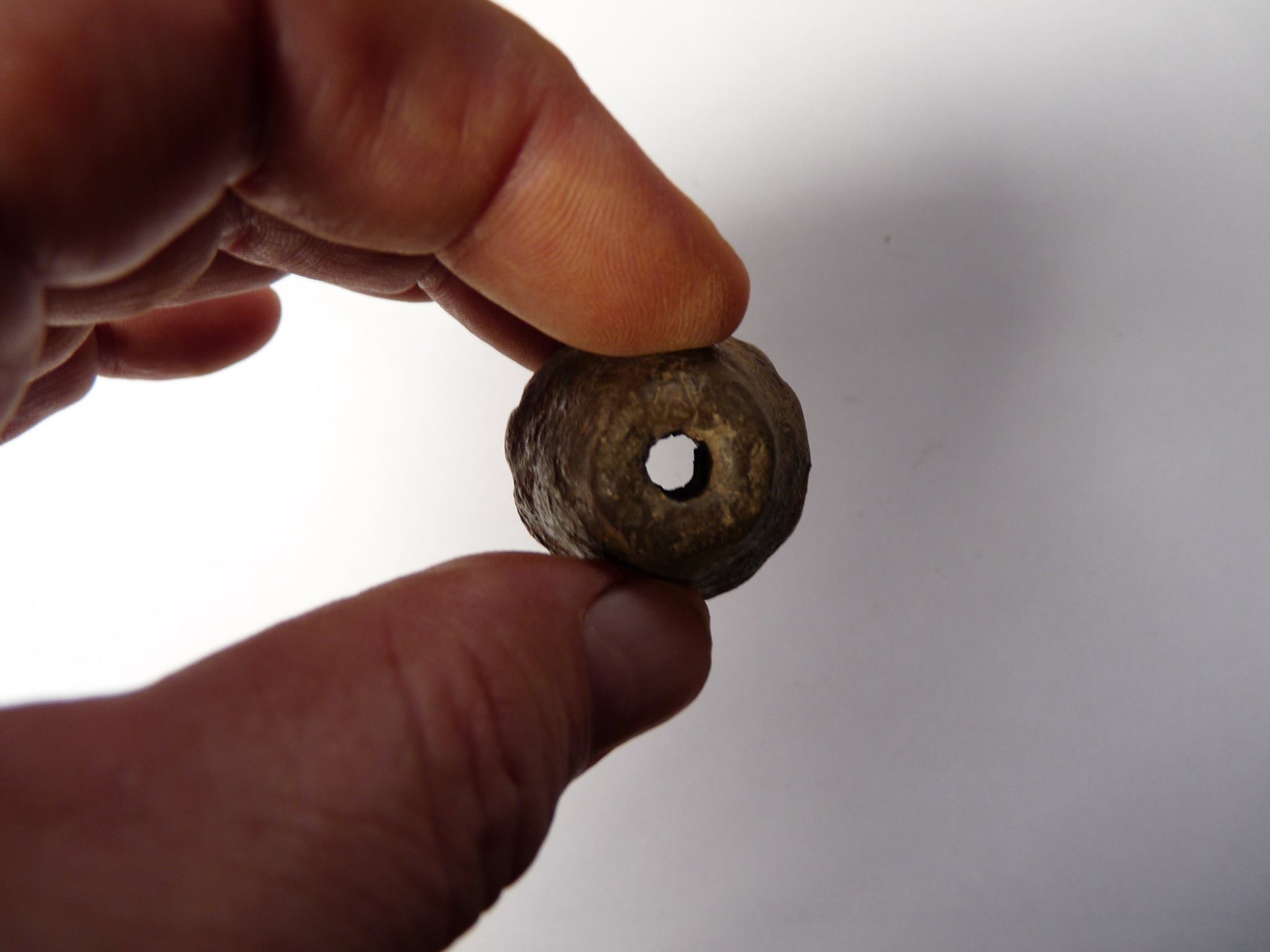 Spontan denke ich an Latene, kann aber auch neuzeitlich sein, Schmuck, muß ja nicht jede Perle verziert sein....