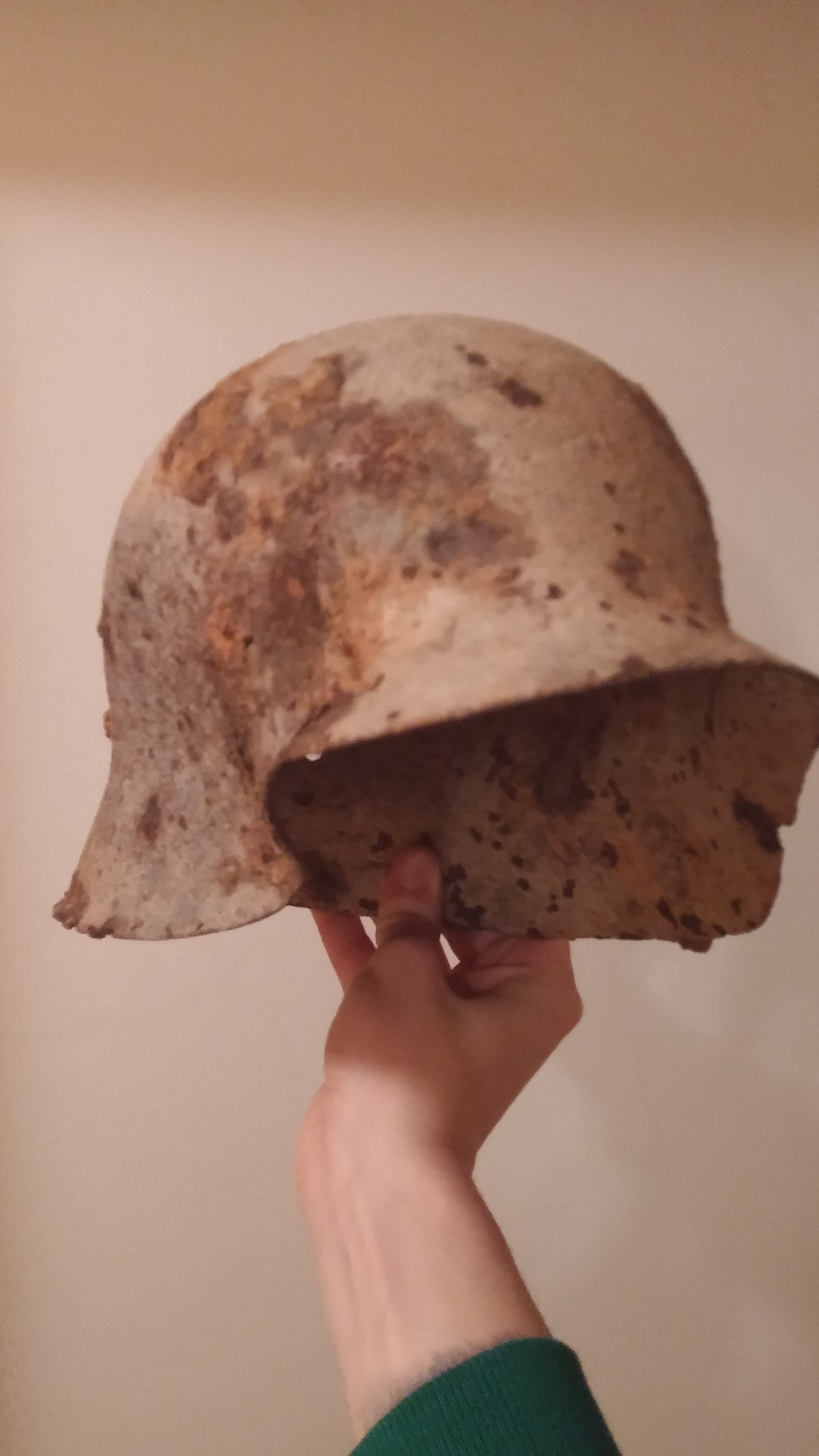 Ist ein Wehrmachtshelm. M35, M40 oder M42/45 (Stanzung in der Helmkrempe) Aber bei dem