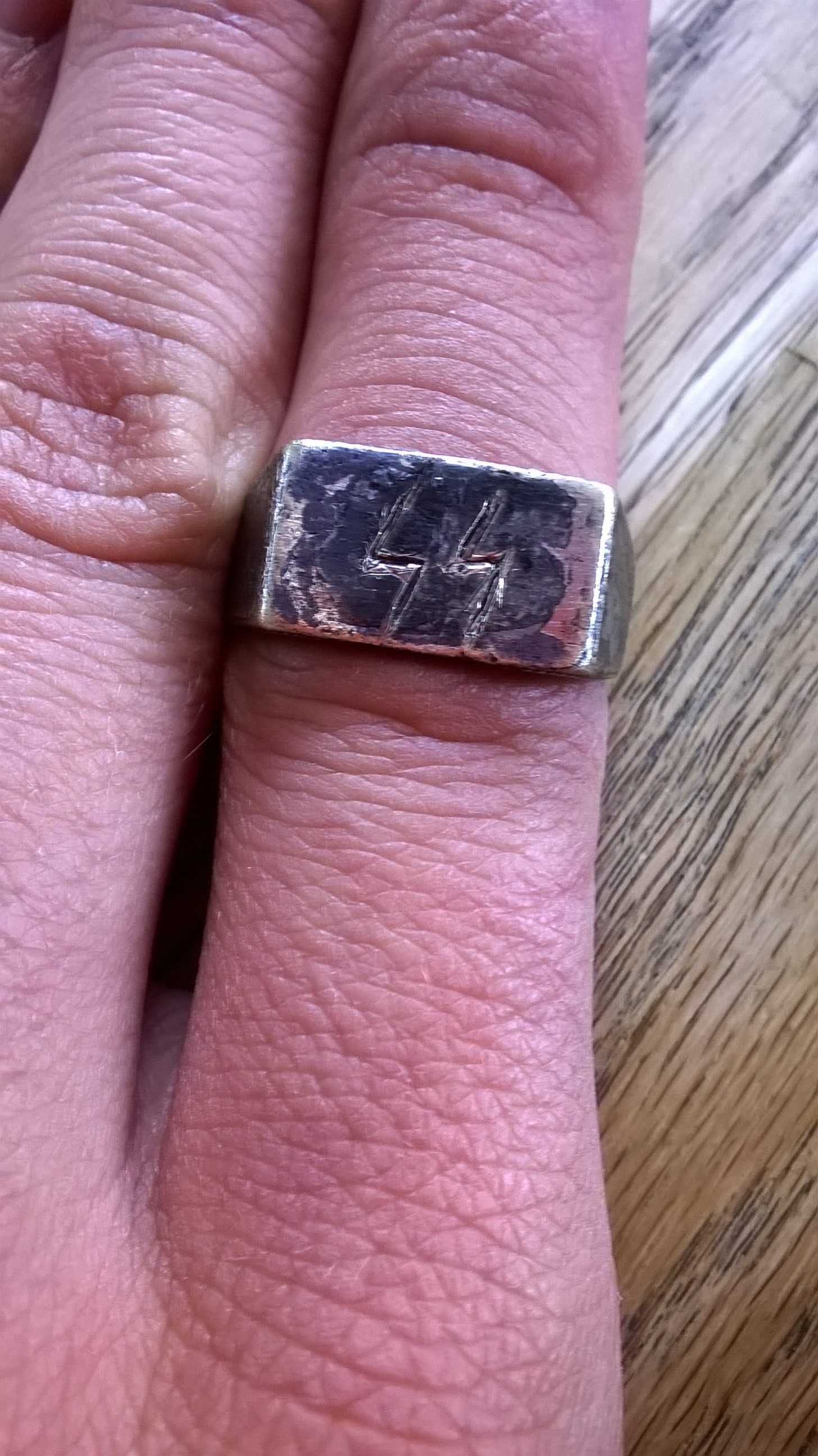Ich weiß, dass man NS- Symbole abdecken sollte, aber dieses Symbol macht nun mal den Ring aus.