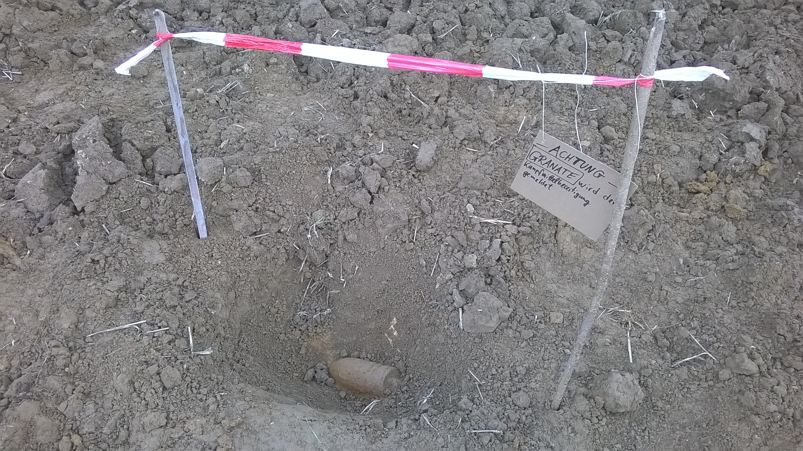 Und das an einem Ort, wo ich es ehrlich gesagt niiiieeeeeemals erwartet hätte. Auf einem gepflügten Acker, auf dem schon 70 Jahre lang ein Blindgänger liegt.Der ist 70 Jahre lang vom Pflug herumgewälzt worden und nie ist was passiert