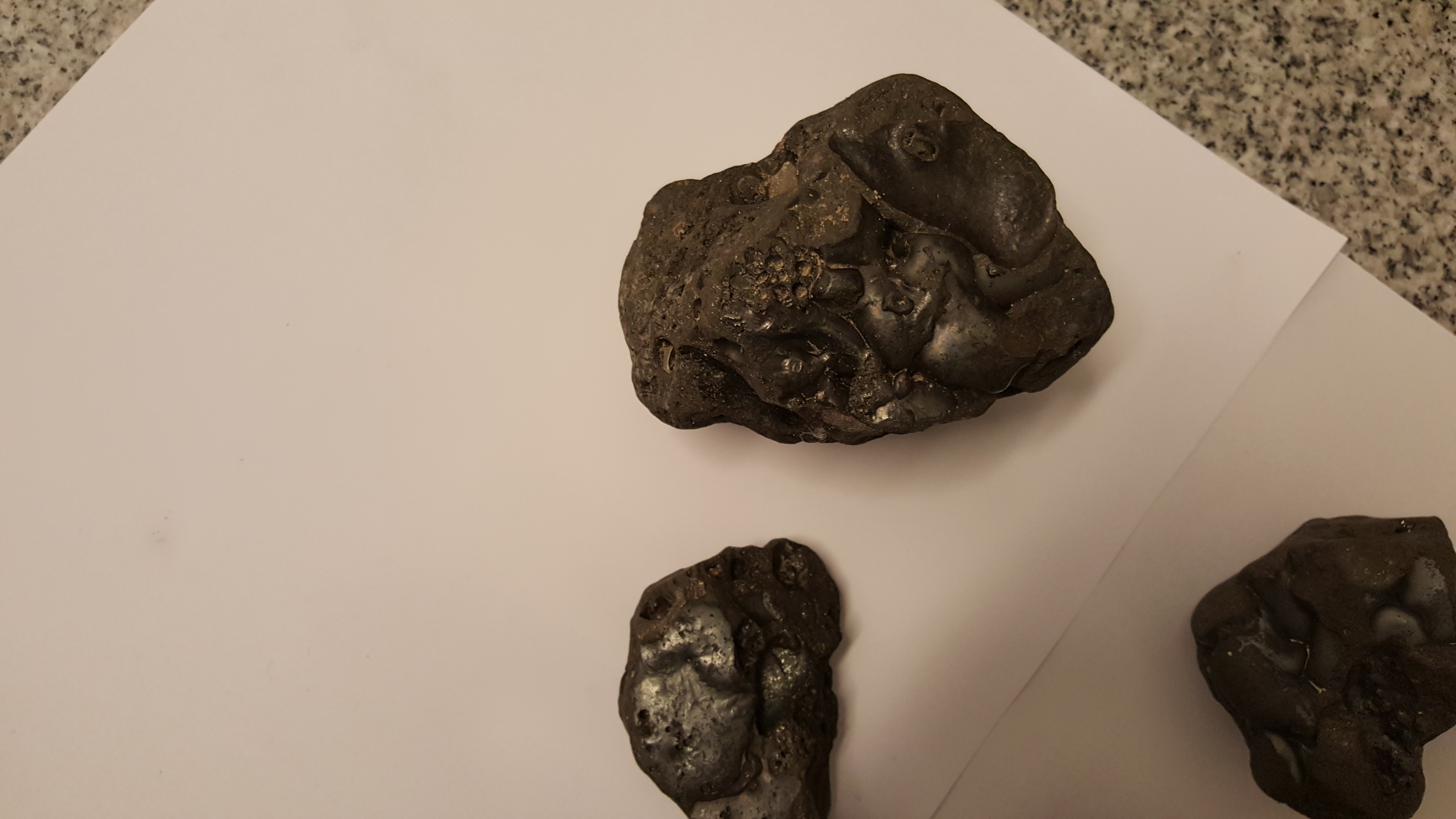 Hallo vielleicht könnt ihr mir helfen. Habe einige schwarze glänzende Steine in einem Flussbett gefunden. Da der Metalldetektor leicht angeschlagen hat, meine Frage: Könnte es sich um Meteoriten handeln?? Ich denke ja es ist Schlacke, da in der Nähe des Flusses einst Schmelzöfen beheimatet waren, aber normal ist Schlacke ja nicht magnetisch. Da es doch einige Objekte sind bin ich ja eher skeptisch;