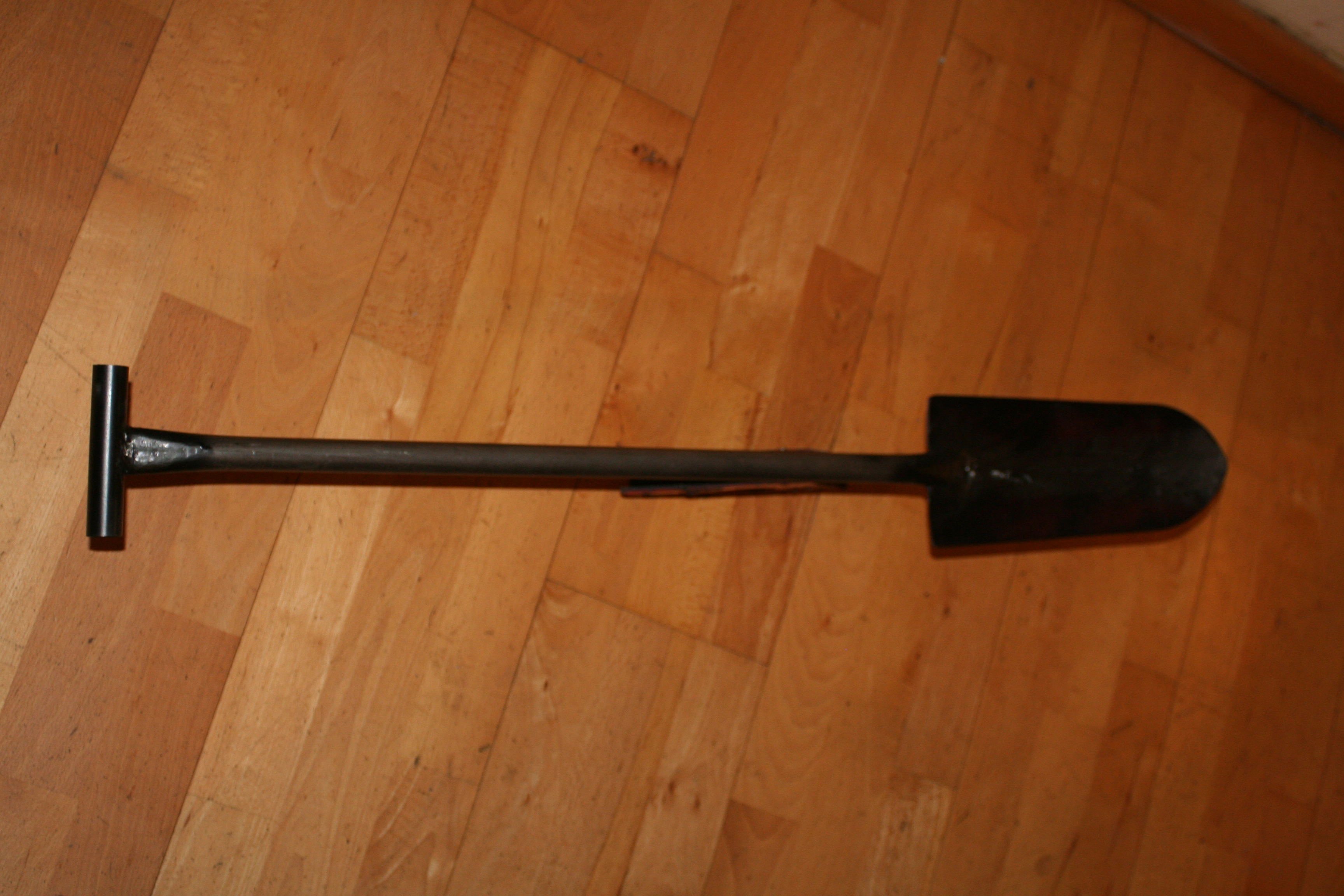 Da wohl noch ein paar Änderungen erforderlich sein werden, habe ich auf das Polieren des Spatens und eine ordentliche Lackierung erst einmal verzichtet.