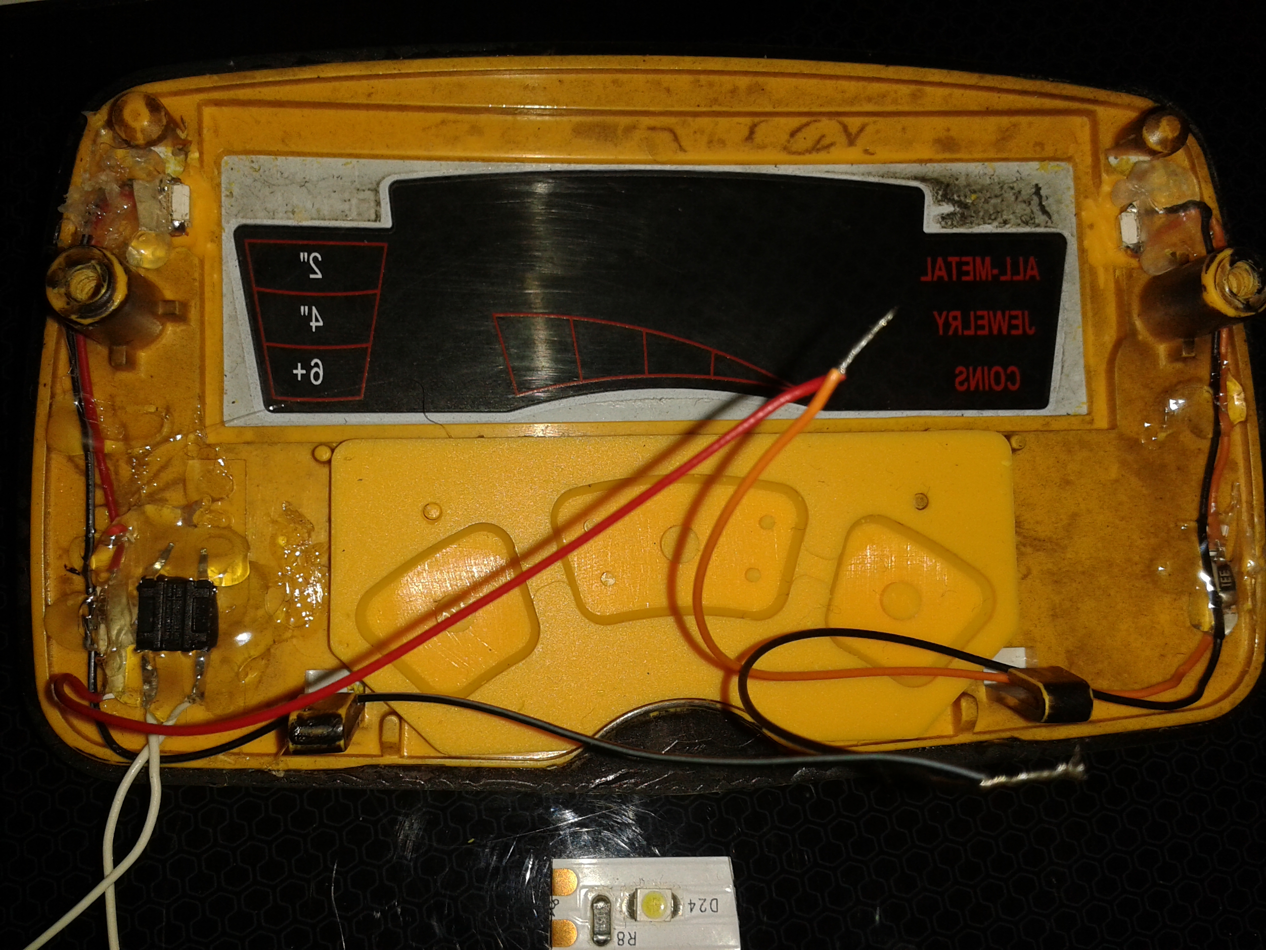 Als ich vor ein paar Tagen abens sondeln war und ich gerne mal aufs Display gucke bei einen Ton vom Garrett hat mich doch gestört das ich jedesmal die Taschenlampe benutzen muste.Also habe ich mir nun eine Displaybeleuchtung mit Druckschalter eingebaut.