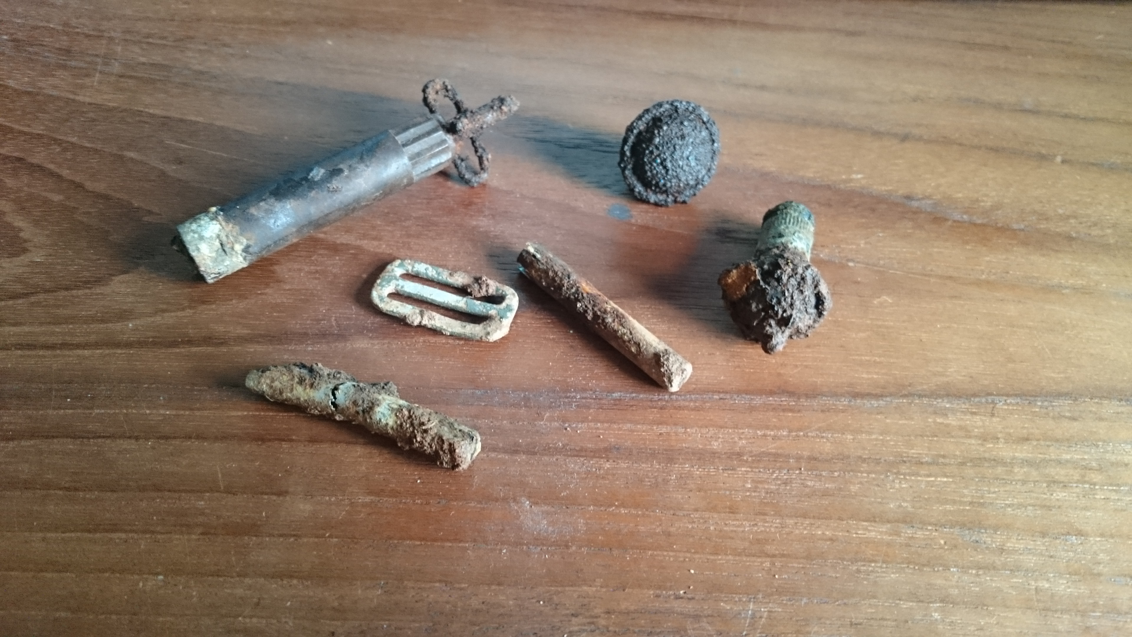Wir haben diese "teile" neben leeren Munitionshülsen gefunden also könnte es von Soldaten sein!