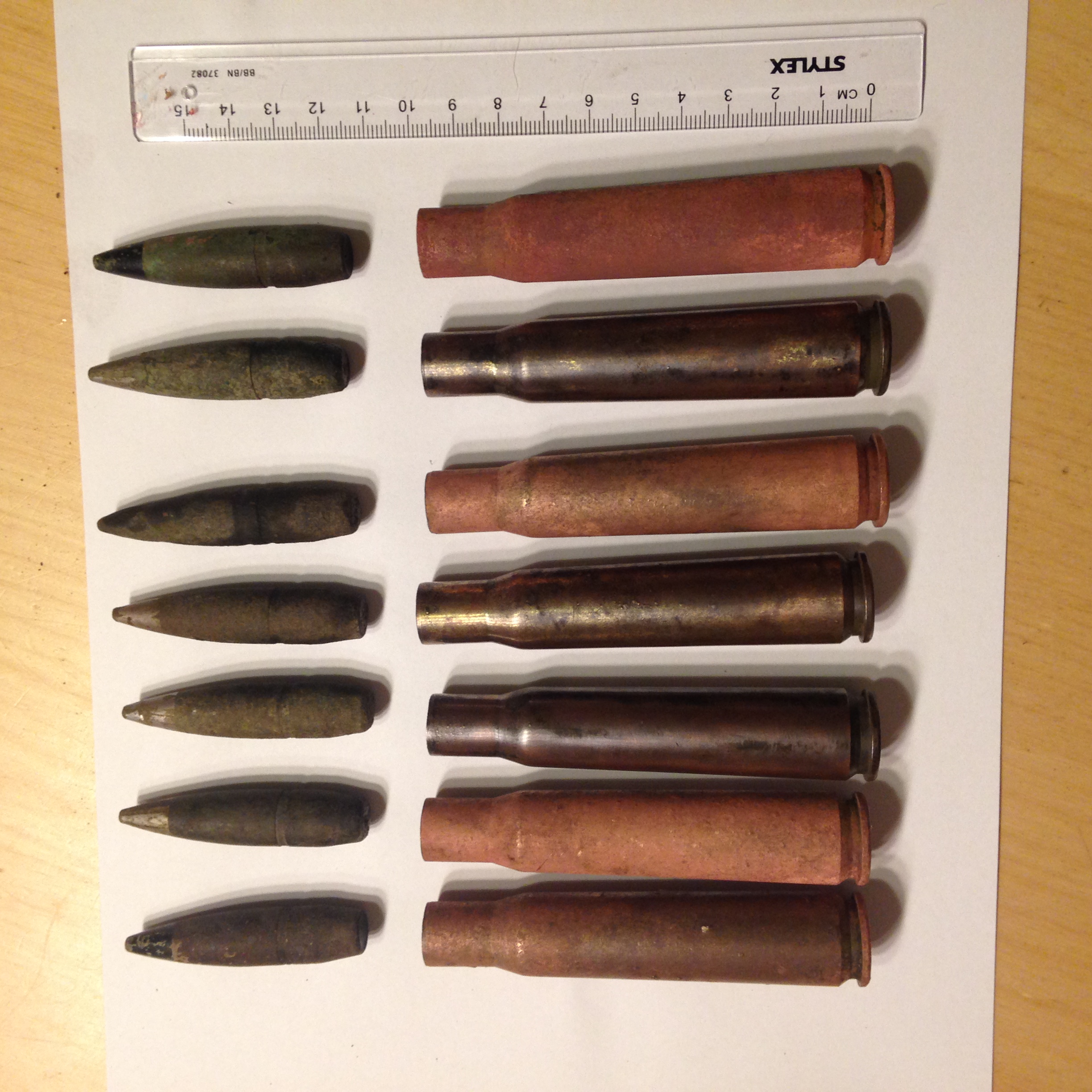 Nr.3 hat glaube ich wenn ich des auf den Fotos richtig sehe zwei Ringe und ist somit ein Brandgeschoss.Die Geschosse mit der Alufarbenen Spitze(4-6) sind Panzerbrechend-Brand und auch nicht ungefährlich.