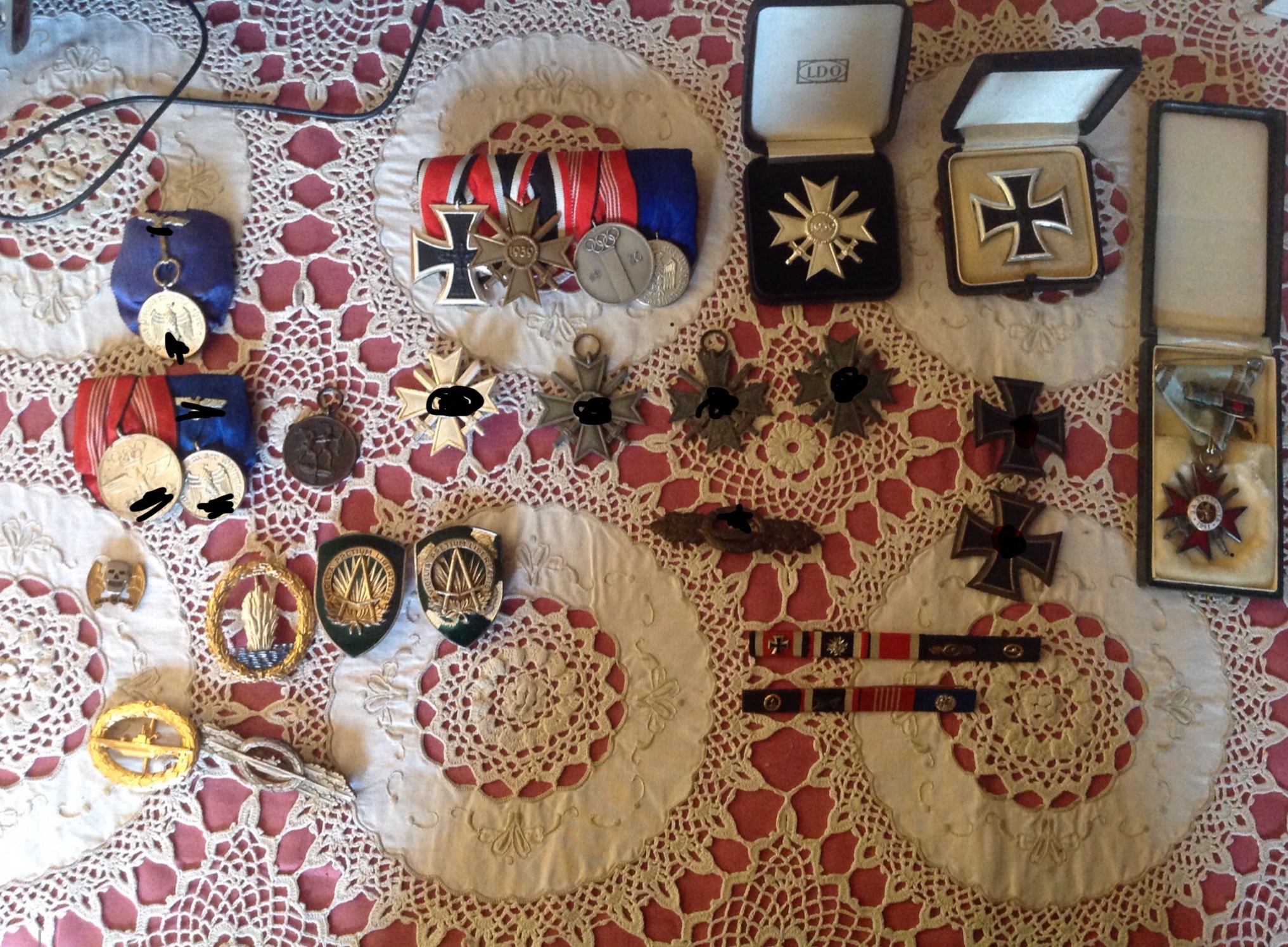 Hallo hier endlich ein Bild von meiner Sammlung, eher geasagt die die ich von meinem Onkel geerbt habe. Ich poste dieses Bild weil ich mich für diese Zeit einfach interessiere und keine NS Ideologie vertrete. Ich hoffe, dass keine Kommentare kommen wo ich als Nazi oder sonstiges beschimpft werde. Trotzdem freue ich mich über sonstige Kommentare :thumbup . Ich hoffe ich konnte alle HK zensieren. Gruss Sucher