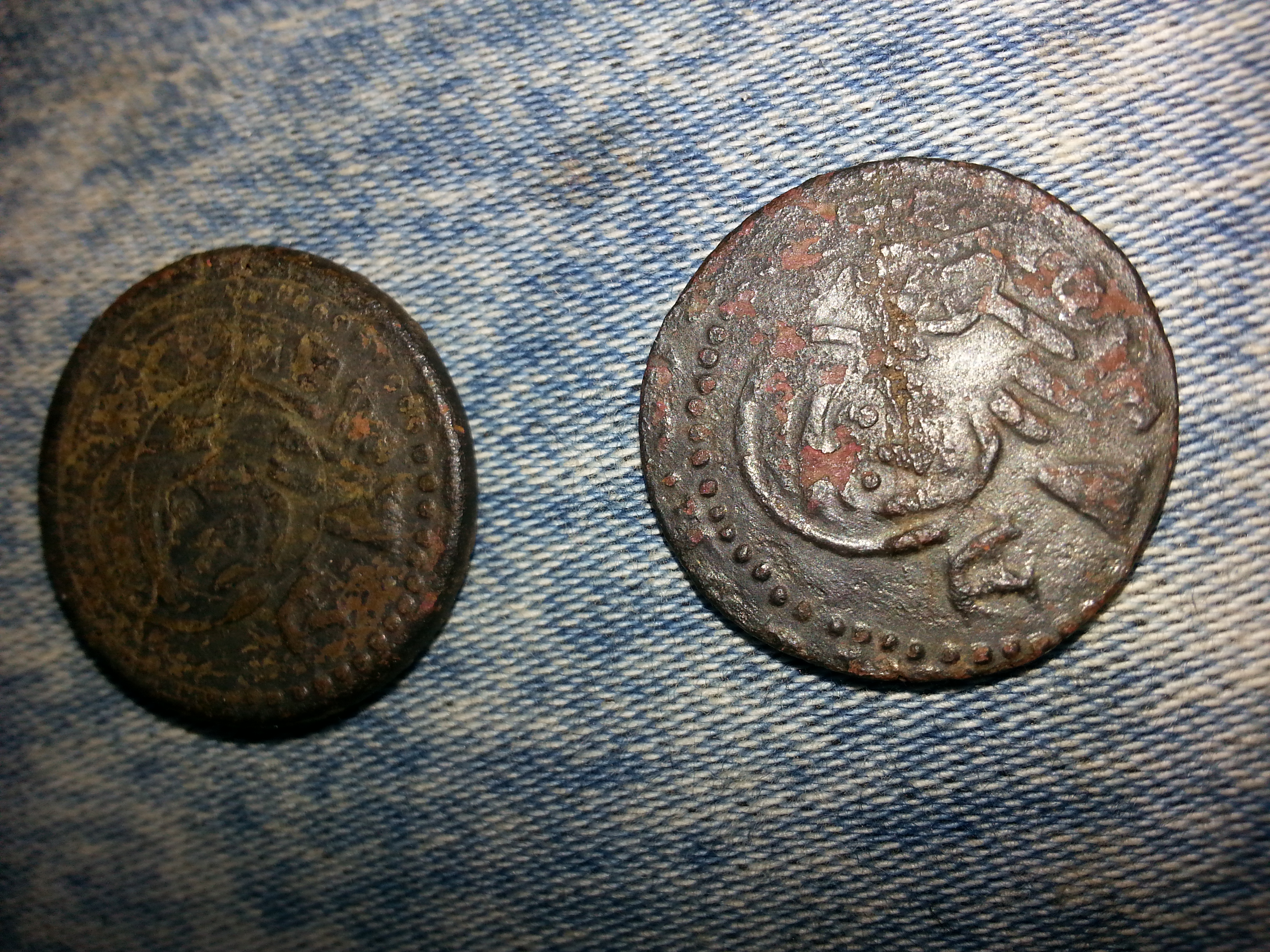heute diese beiden hübschen gefunden. Eine davon dünn, die andere dick (vermutlich aus Bronze). Ansonsten zweimal das gleiche Motiv. Kann jemand sagen welche das sind? Zeitalter?