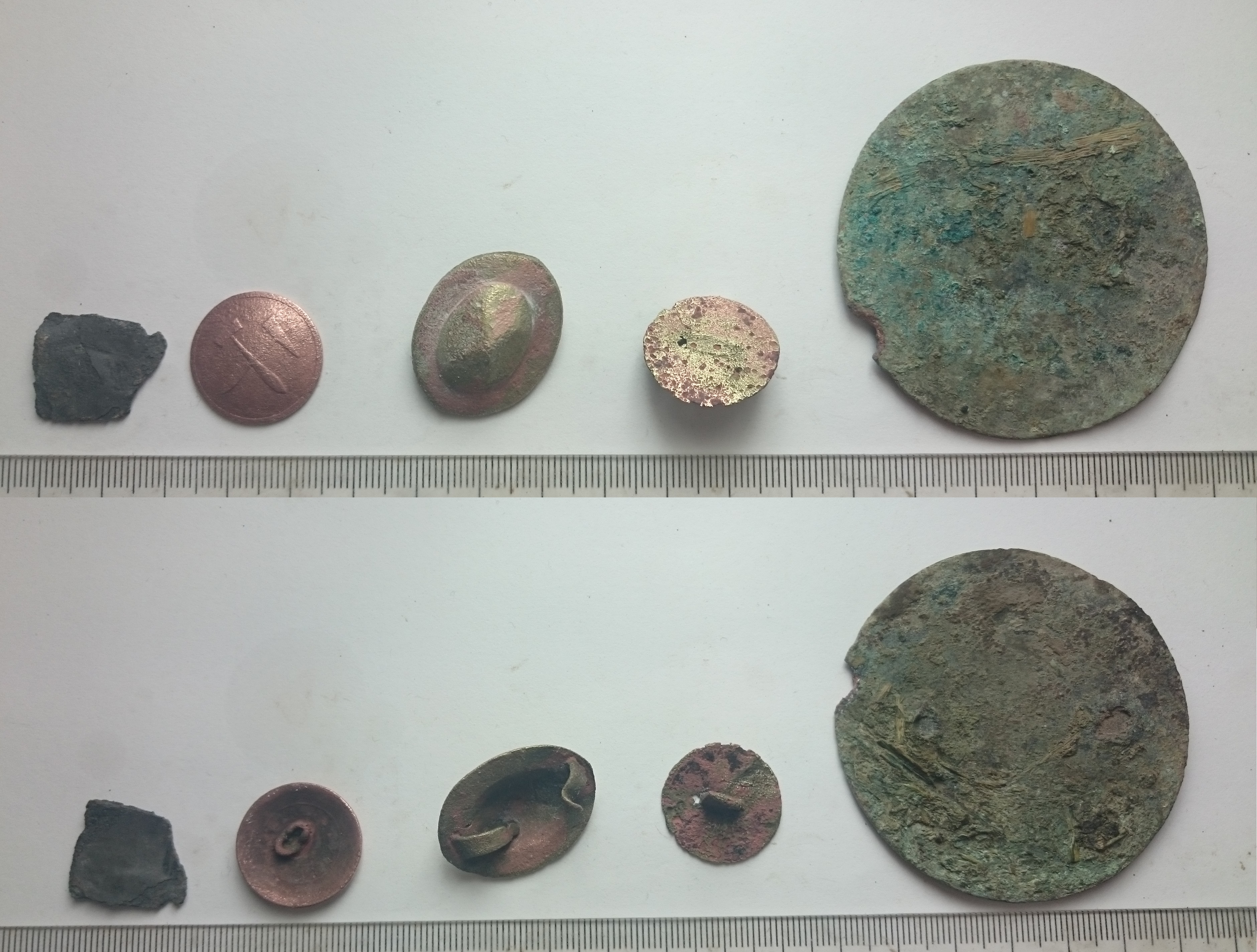Nochmal zu Objekt 1 mit den Rillen. Die Messung hat eine Rillenanzahl von 3 pro mm innen, 4 pro mm mitte & 5 pro mm aussen ergeben. (Dabei sind meine Augen fast zerbrochen.) Weder war diese Präzision bei Munitionshülsen erforderlich noch wurde sie jemals erreicht. Mein Bild der Munitionsproduktion im II.WK. sind Menschen die in halber Manufakturarbeit Hand in Hand mit der Maschine arbeiten. Das einzige wo dieser Abstand heutzutage Sinn macht ist als eingelaserter Sicherheitsstandard auf Goldmünzen in Form feinster Radiallinien, damit die Chinesen diese nicht sofort mit ihren Vergoldungen fälschen können. Und das Objekt (non-iron) ist an einer Stelle vollkommen durchkorrodiert. Es sieht nicht so aus, als ob es da erst seit Gestern gelegen hätte.