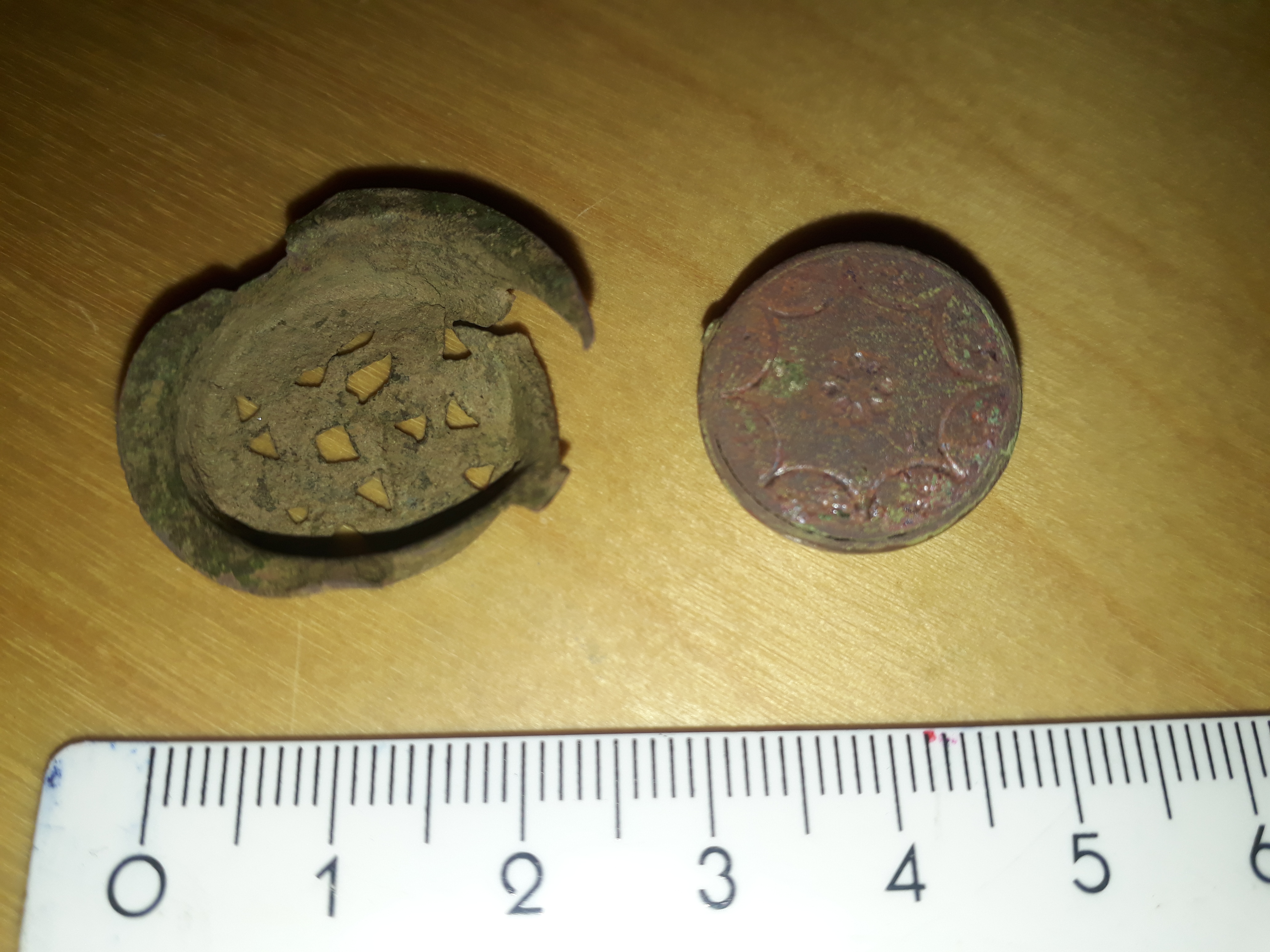 2 = Knopf ? Ist versilbert, hat aber kein Öse wie ein Knopf ...