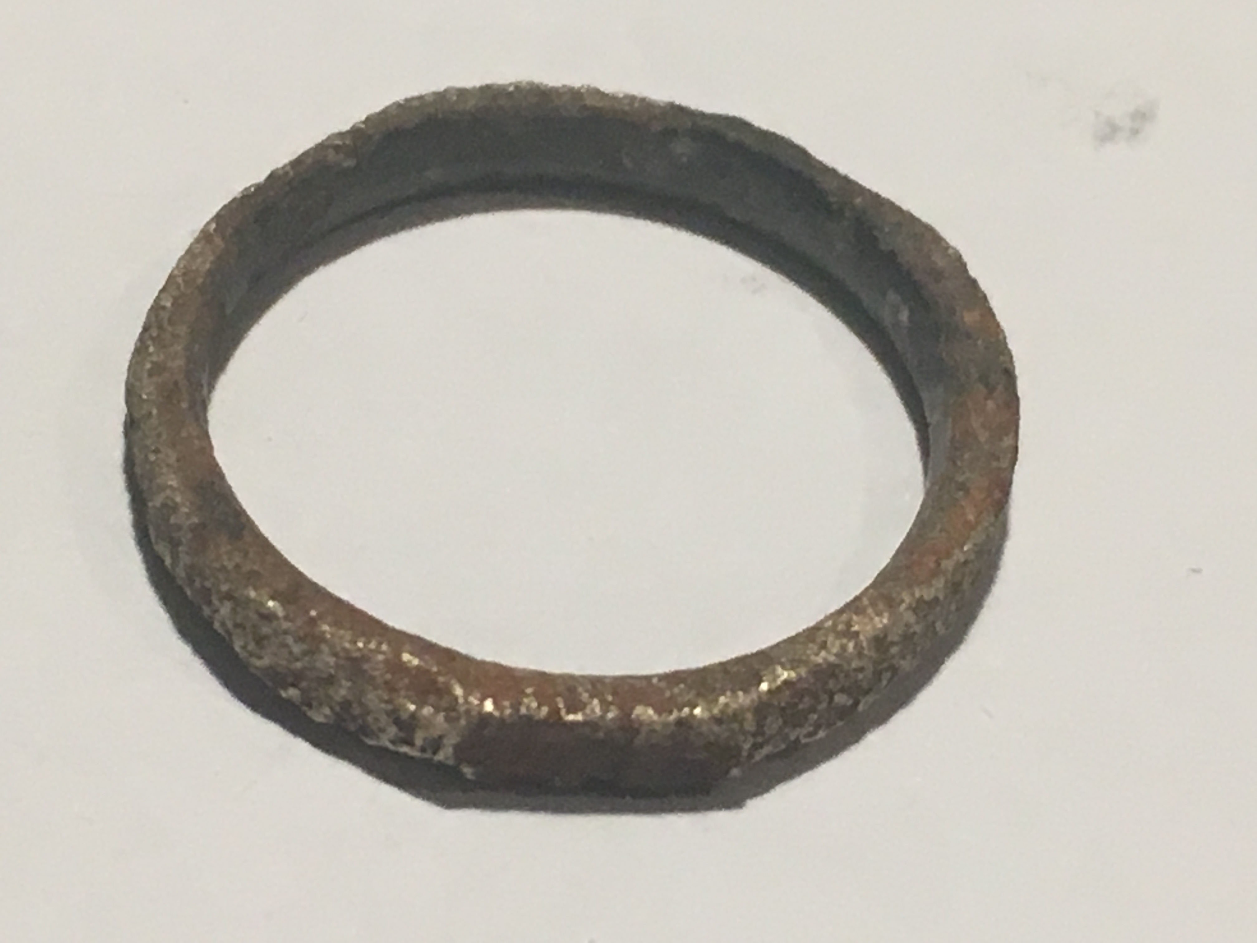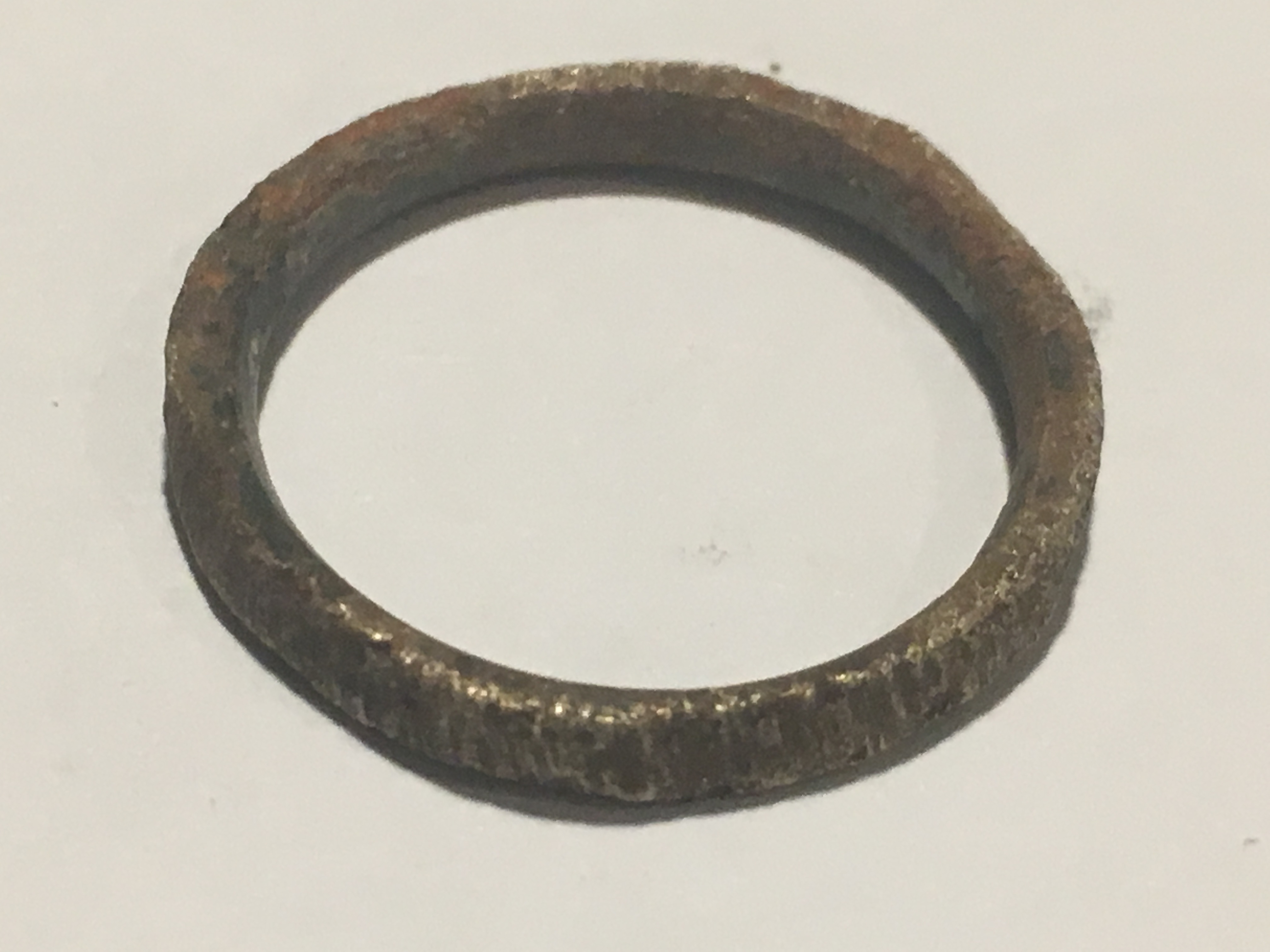 Hallo habe hier noch einen Ring mit 2 cm Durchmesser. Für mich schaut er nicht maschinell hergestellt aus. Sehr robustes Material und glänzt golden. Vielleicht hat jemand von euch so etwas schon einmal gesehen? Lieben Dank für die Mühe