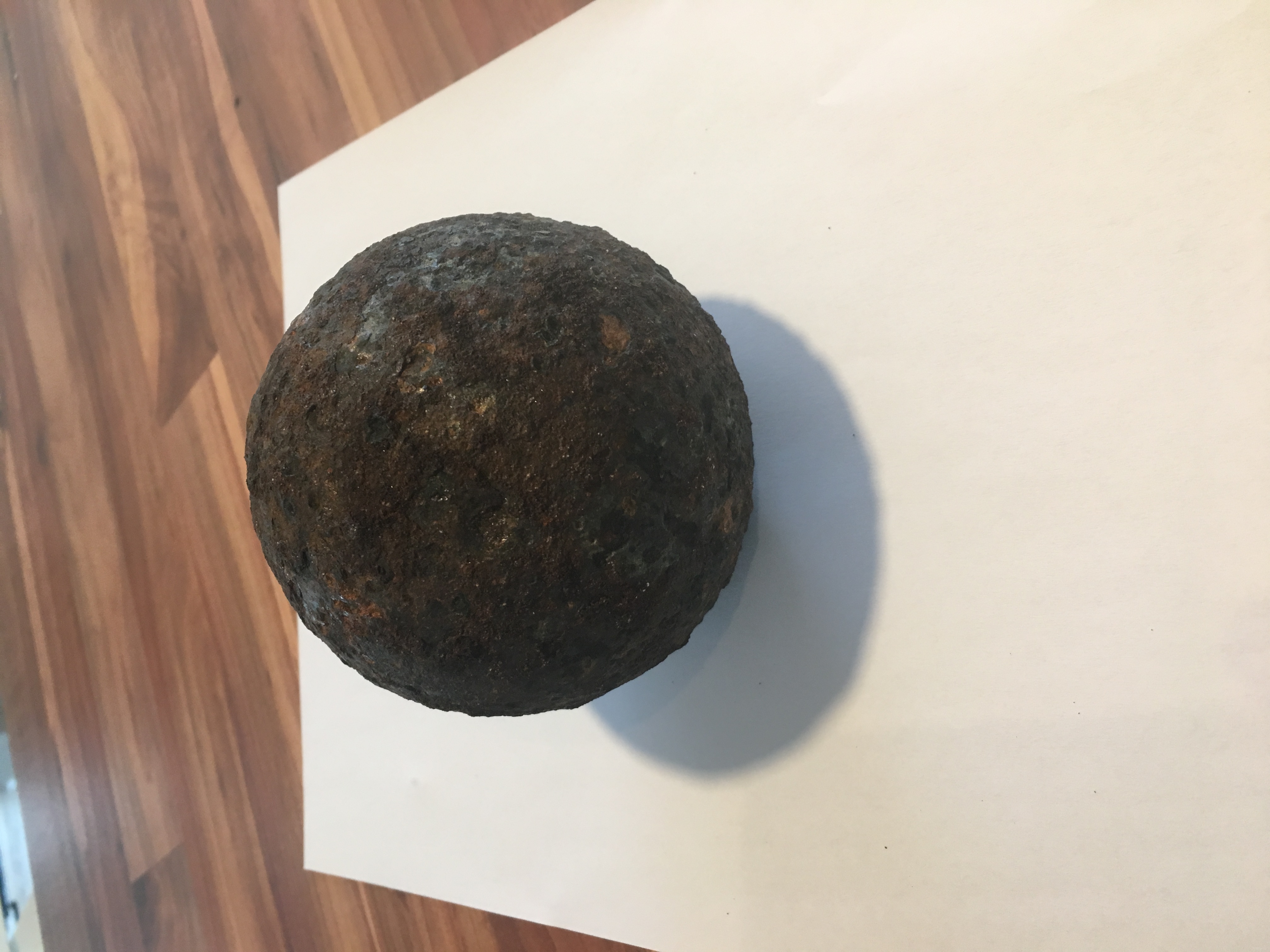 Hallo hab hier eine Kanonenkugel und kann sie nich datieren. Durchmesser 110mm Gewicht 2,7 kg. Und Weiß jemand wie ich die schön sauber bekomme? Danke schon mal