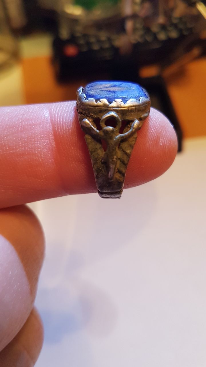 Ich habe hier einen sehr schönen alten Ring mit seitlich eingearbeiteter Jesusfigur auf beiden Seiten.