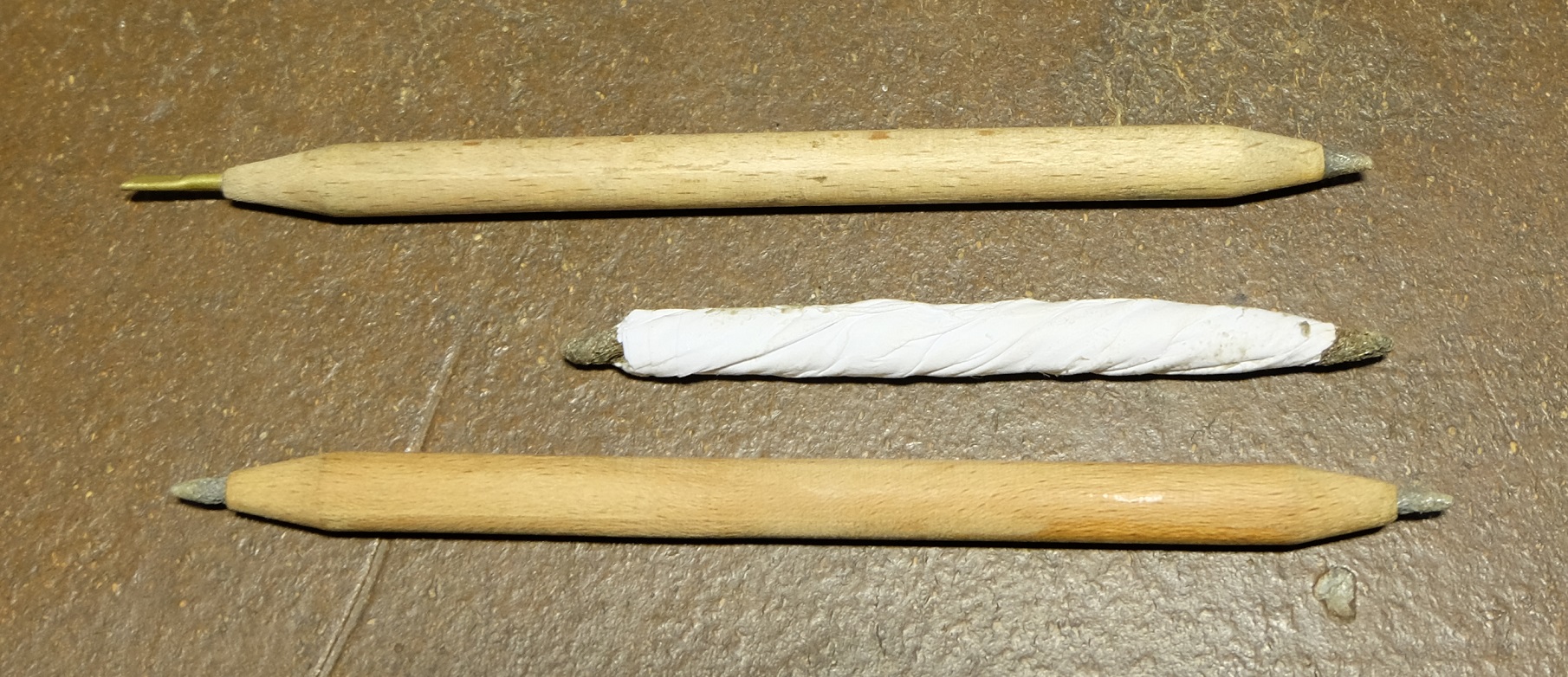 Meist verwende ich anderes Werkzeug wie Stahlwolle Stifte. Der in der Mitte ist selbsgemacht.