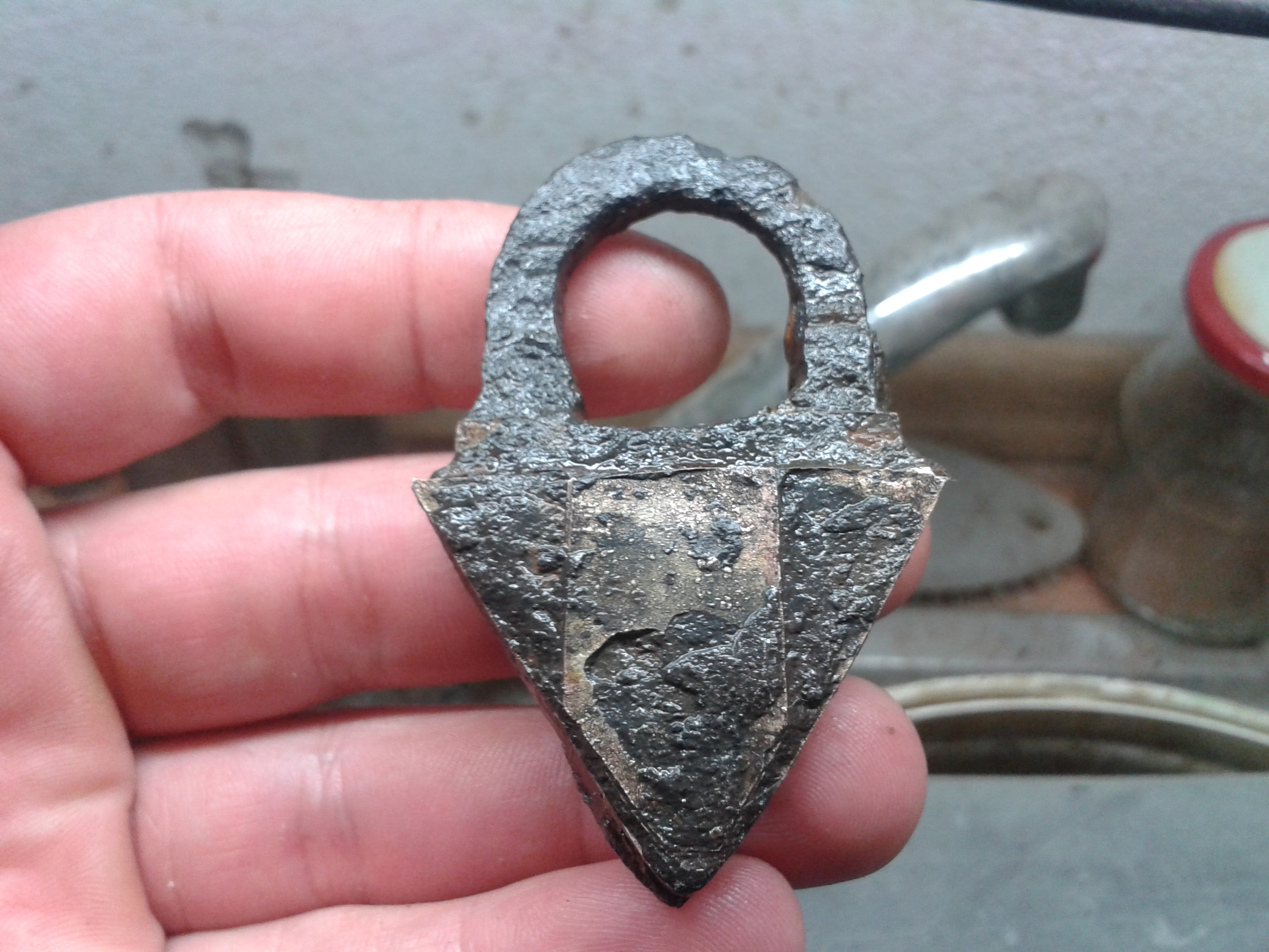 Mein Tipp, für ein paar Monate ins dest wasser legen das das Fundstück entsalzt wird!