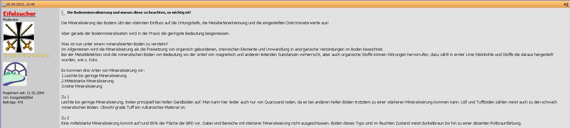 1.) als ich im Mai 2011 (nach GMaxx2 und GMP) den Deus neu hatte, habe ich ihn zunächst an meinem Ingotestloch gegen die zwei and. XP's "antreten" lassen bevor ich ihn "richtig" einsetzte. Zunächst mit den Werksprogrammen der V2 und sehr mäßigem Ergebnis, nachzulesen bei sondengaenger.at