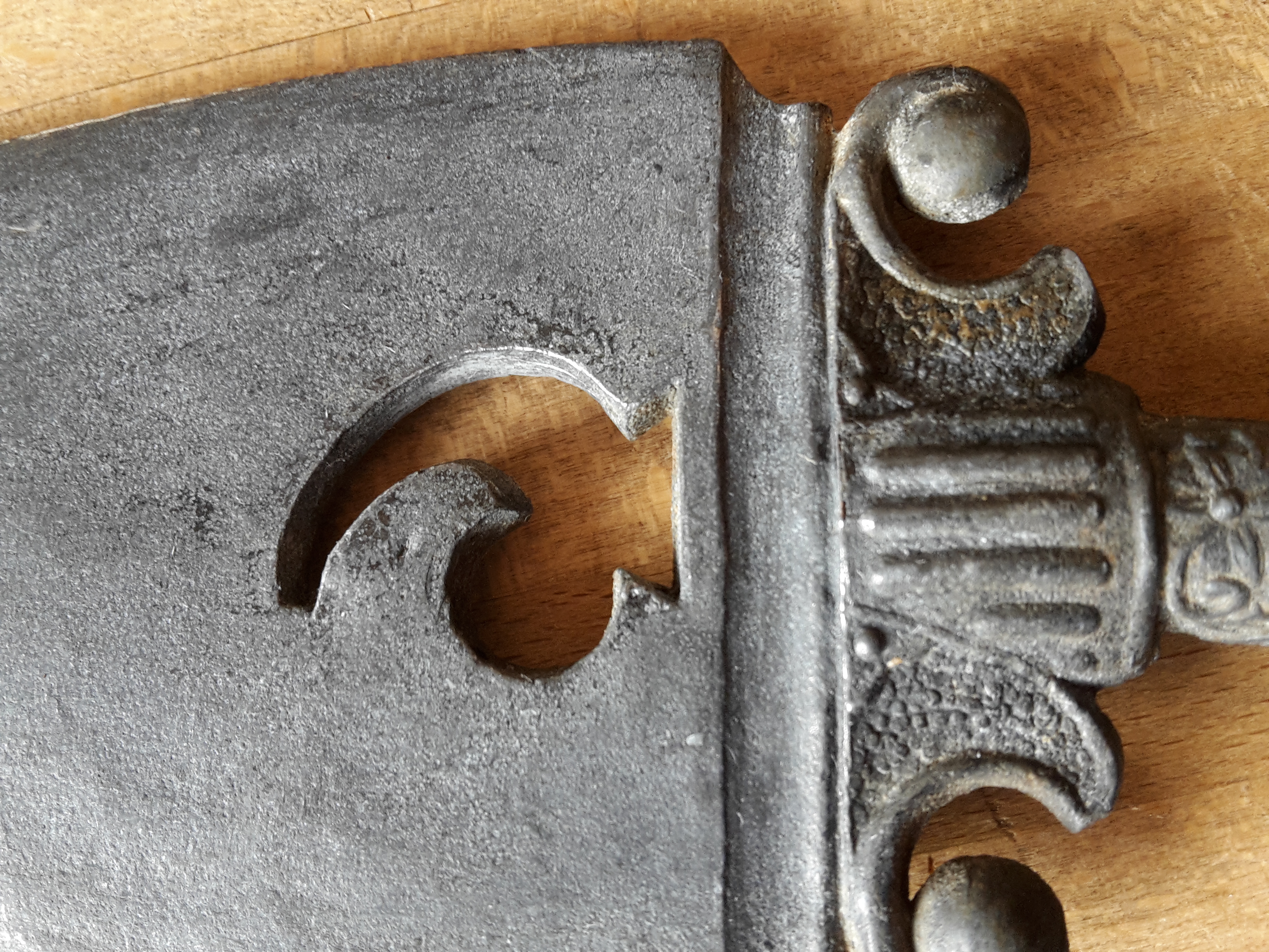 Wo ihr gerade alle da seid, ich habe bei Gartenarbeiten im letzten Jahr etwas gefunden, wo ich nicht weiß, ob es alt ist oder auf alt gemacht. Auf jeden Fall sieht es so aus, als wenn es aus zwei Hälften zusammengesetzt wurde und es ist nicht magnetisch aber 270 Gramm schwer und 23 cm lang. Es war in 50 cm Tiefe in einer alten Efeu-Wurzel eingewachsen. Ihr könnt es euch ja mal anschauen. Bin für jeden Hinweis dankbar.