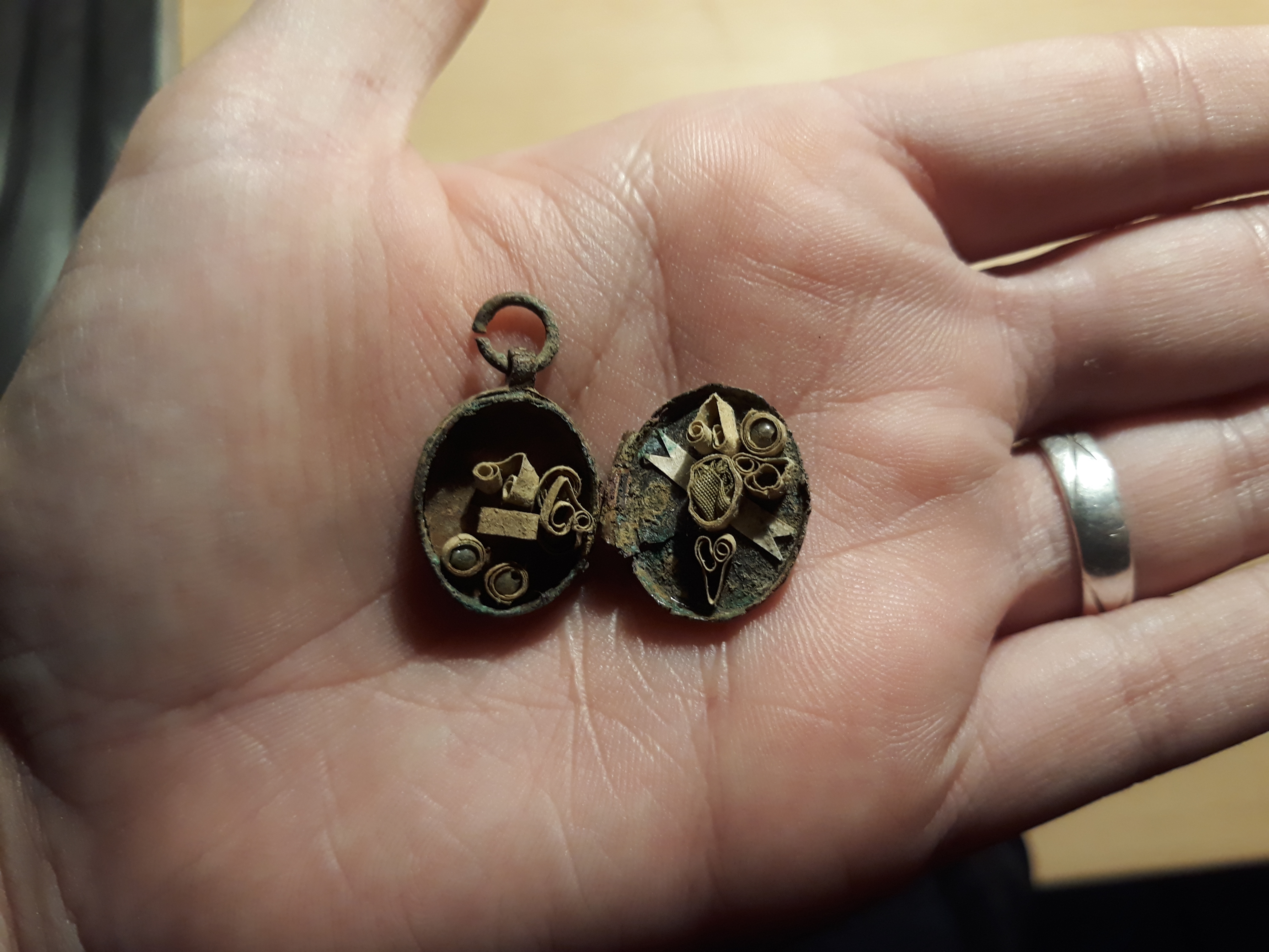 Camino hat geschrieben:Das war im Anhänger drin: lauter kleine Papierstückchen, teilweise umwickelte Perlen. Jemand eine Ahnung für was das gut war oder was das zu bedeuten hatte?