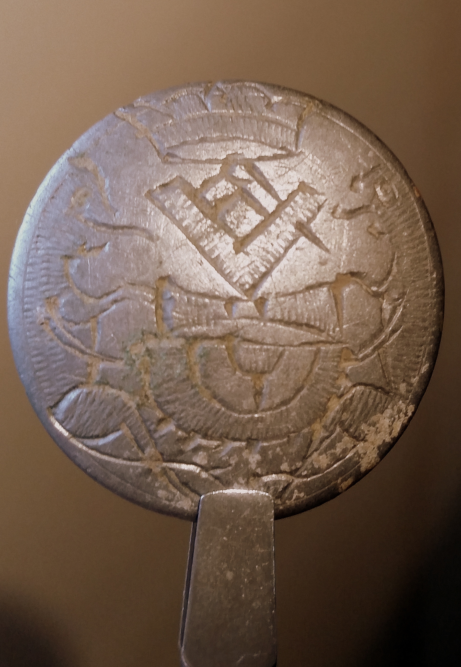Also Freimaurer kann ich schon mal ausschließen, der Zirkel durchsticht nicht den Winkel und das Typische G für Genosis fehlt mir auch, interessant ist die Zusammenstellung mit Schale und ich sage mal Kelch unter dem Zirkel, auch interessant sind die Seitenapplikationen die meiner Meinung nach 2 Tiere darstellen aber welche hab ich noch nicht raus bekommen. Zunftknopf auf jeden fall aber kein Zimmerer und auch kein Tischler, Steinmetz schließe ich auch mal aus.
