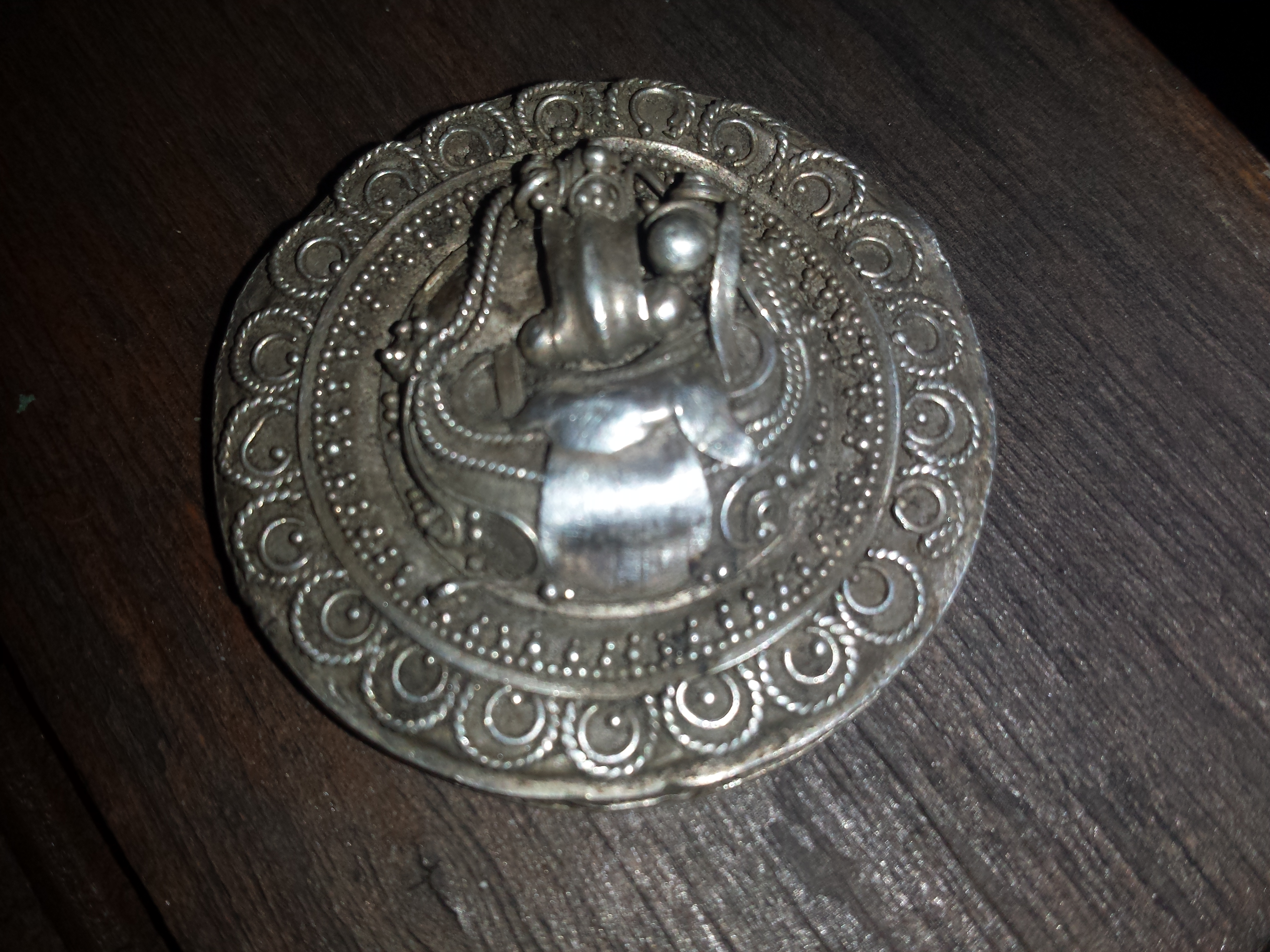 Hallo. Ihr könnt mr bestimmt weiterhelfen. Habe vor ca. 4 Moaten ein Grundstück erworben,bei Grabungsarbeiten sind wir auf dieses Objekt gestossen.Durchmesser 35mm,schön verziert und wahrscheinlich aus Silber. Würde mich freuen,ihr kennt euch aus und könnt etwas dazu sagen :thanks