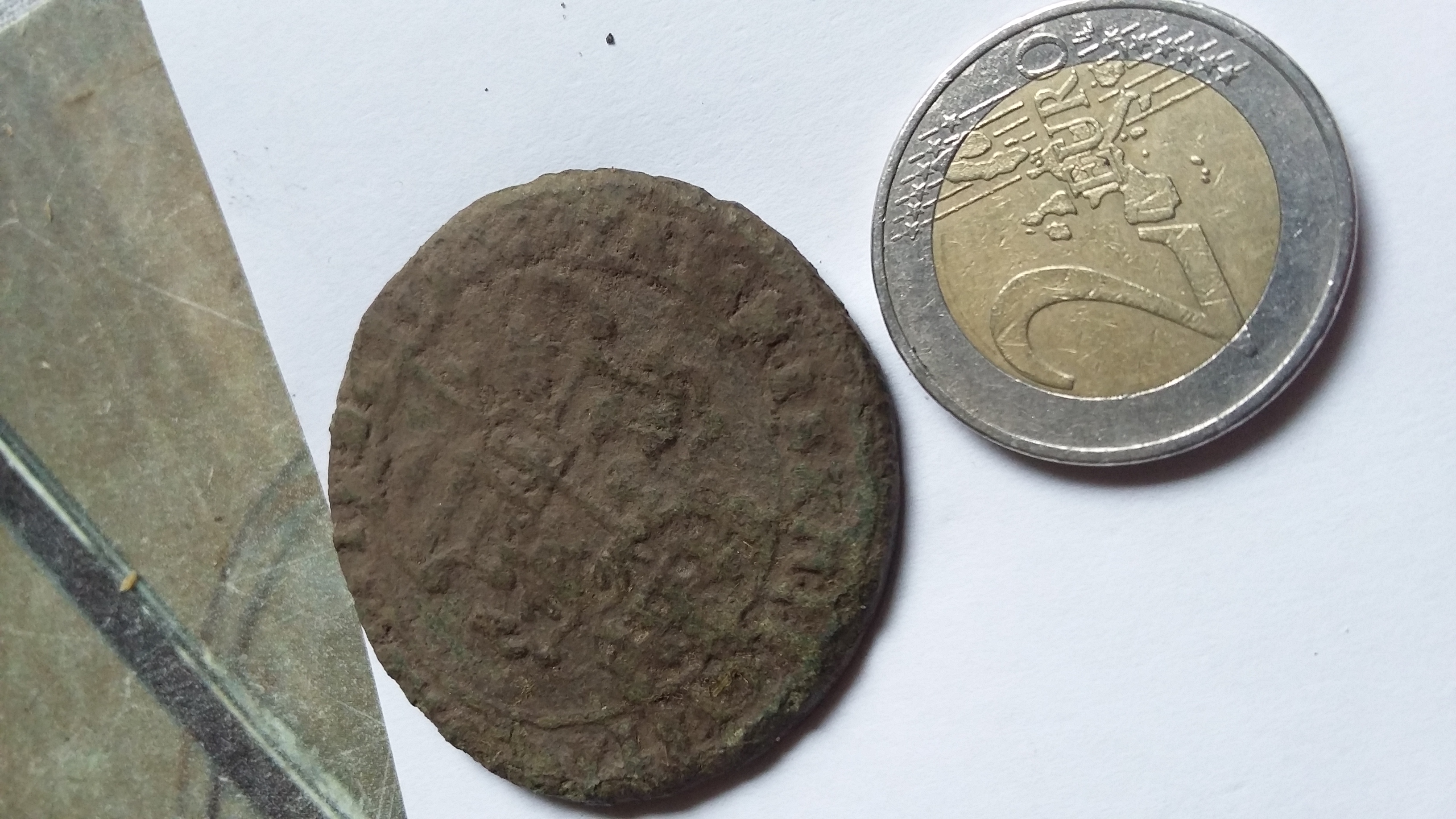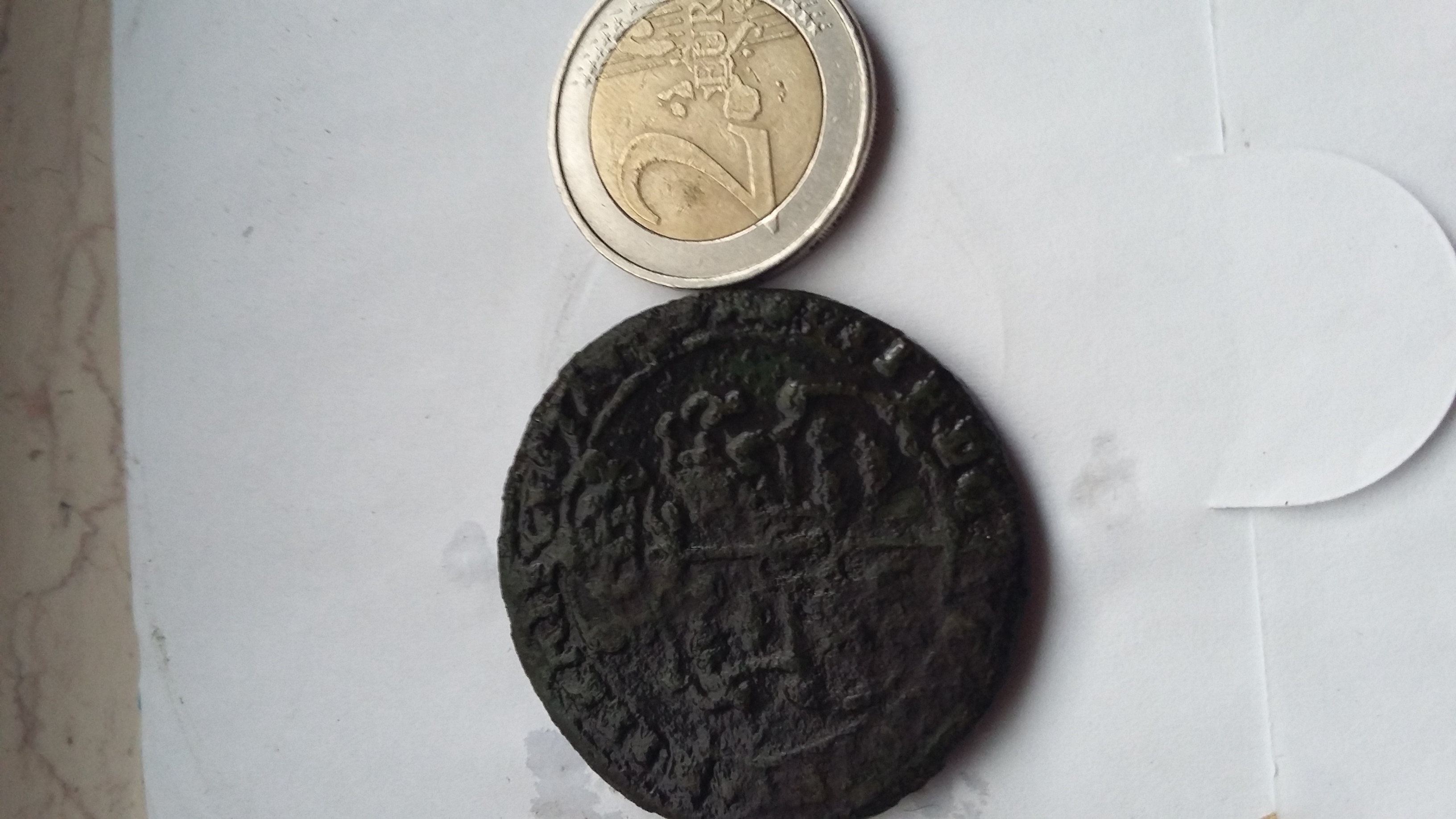 Hey leute ich war bestimmt 1 jahr ausgesetzt aber ich war mal wieder los :) habe auch was gefunden .. ich traue mich nur nicht sie sauber zumachen .. was ich sehe sind eigentkich 2 gekreutze pfeile .ist auch schon soo extrem mit genommen vom acker.. wie gesagt man sieht nicht viel leider :/