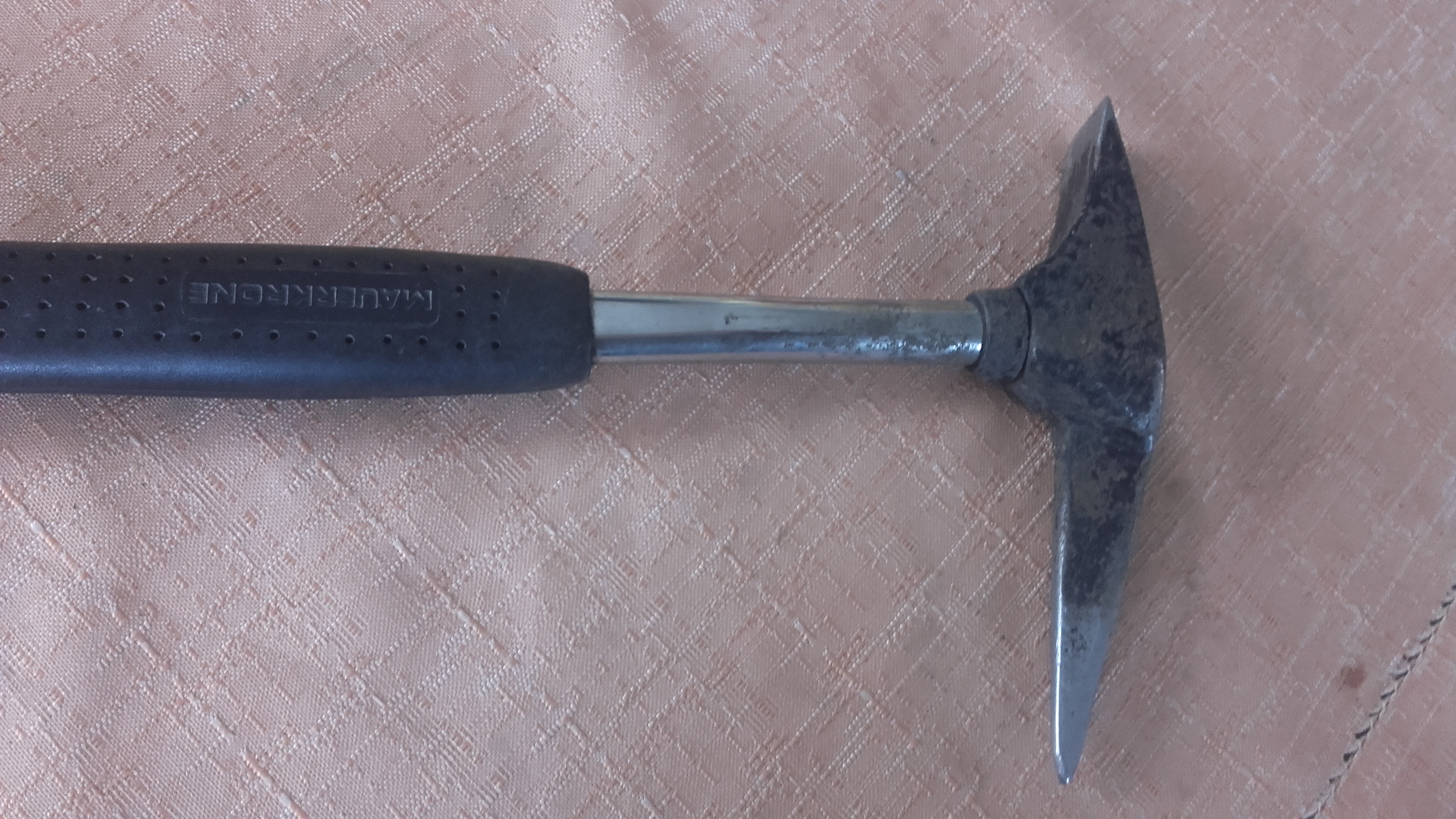 ein zimmermannshammer der nachteil war er ist ein bissl schwer gewesen und zwischen den zwei zinken blieb immer dreck hängen.