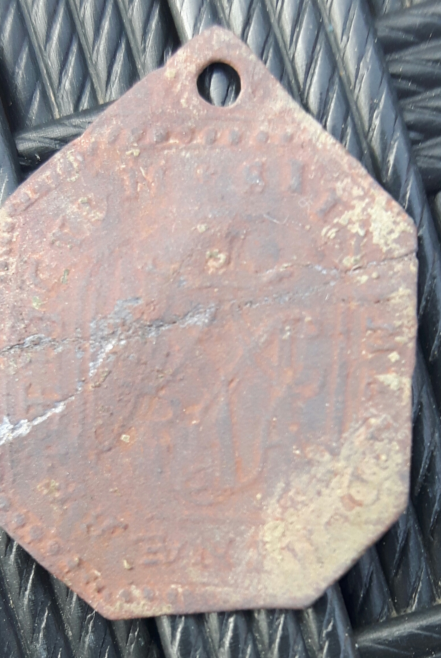 kannst du entziffern was auf dem Anhänger steht?mal mit licht von der seite versuchen!