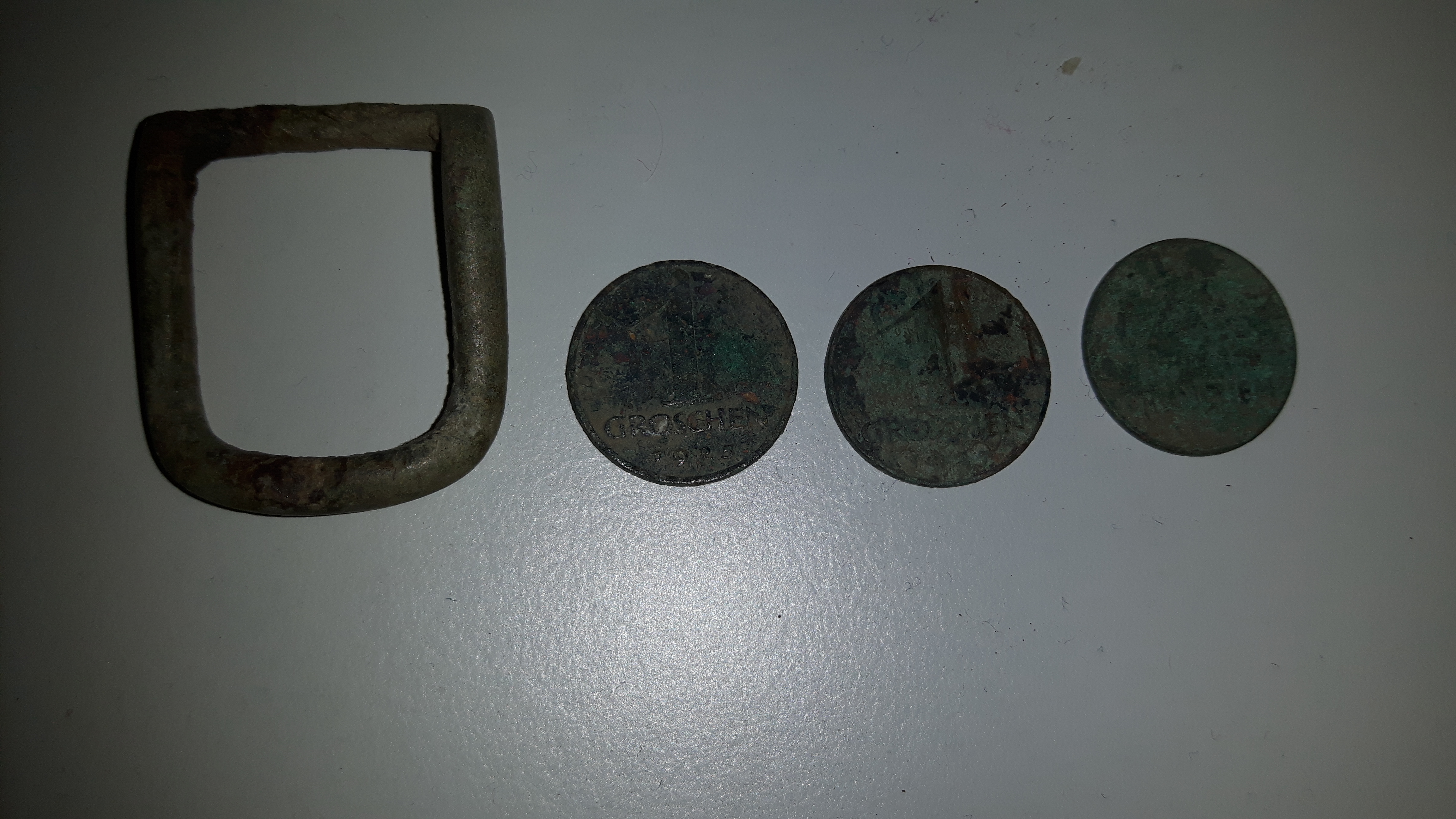 Im ersten Weingarten kam dies zum Vorschein 1 Groschen 1925, der Andere 1927 und einer 1929, dazu noch einen Kupferschnalle