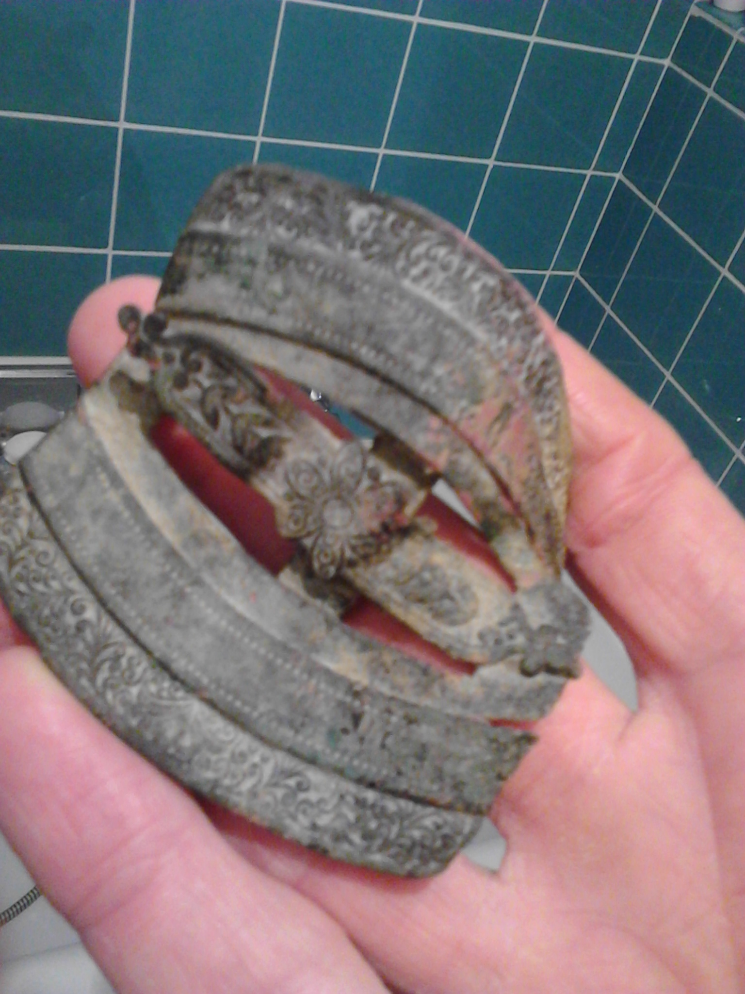 Bei Bild 1 und 2 handelt es sich um einen Miederhaken (dient zum Verschließen des Mieders - es gehört noch ein zweites, ähnliches Teil dazu).