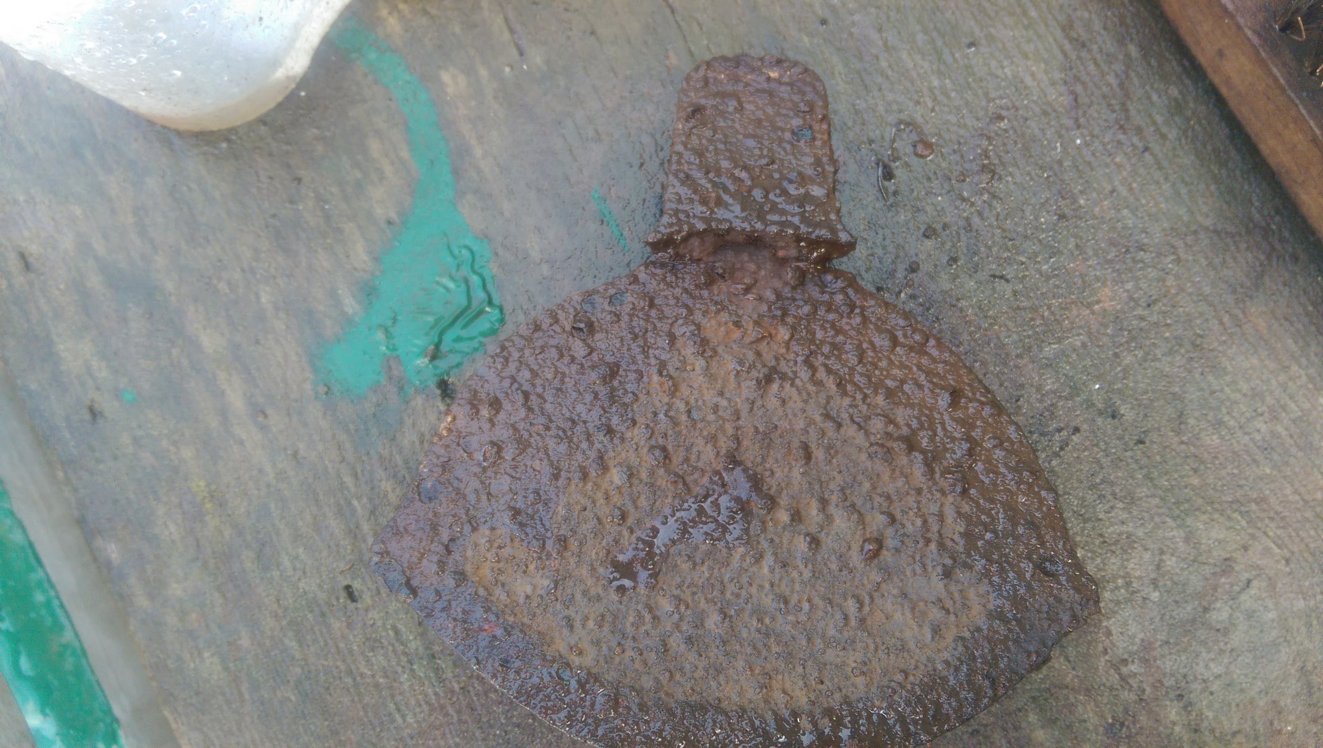 Vielleicht kann mir noch jemand einen Tipp geben wie man so etwas am besten reinigt? Da sich noch Farbe (rot) am Objekt befindet, dass ich nicht unbedingt zerstören möchte!Wäre hier eine leichte Seifenlauge angebracht?