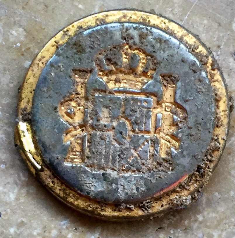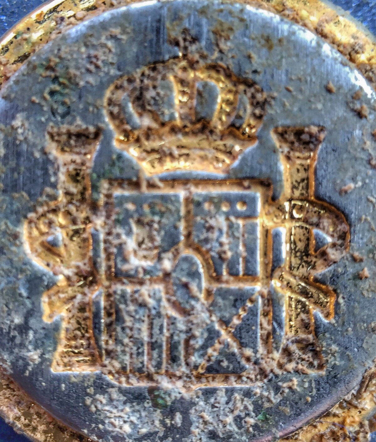 Hallo, habe einen golden Knopf oder Siegel gefunden den ich nicht einordnen kann. Das Wappen hat große Ähnlichkeit mit dem spanischen Königswappen aber ein paar Kleinigkeiten sind anders. Vielleicht kennt sich von Euch jemand damit aus und kann mir sagen was das ist. Dankeschön