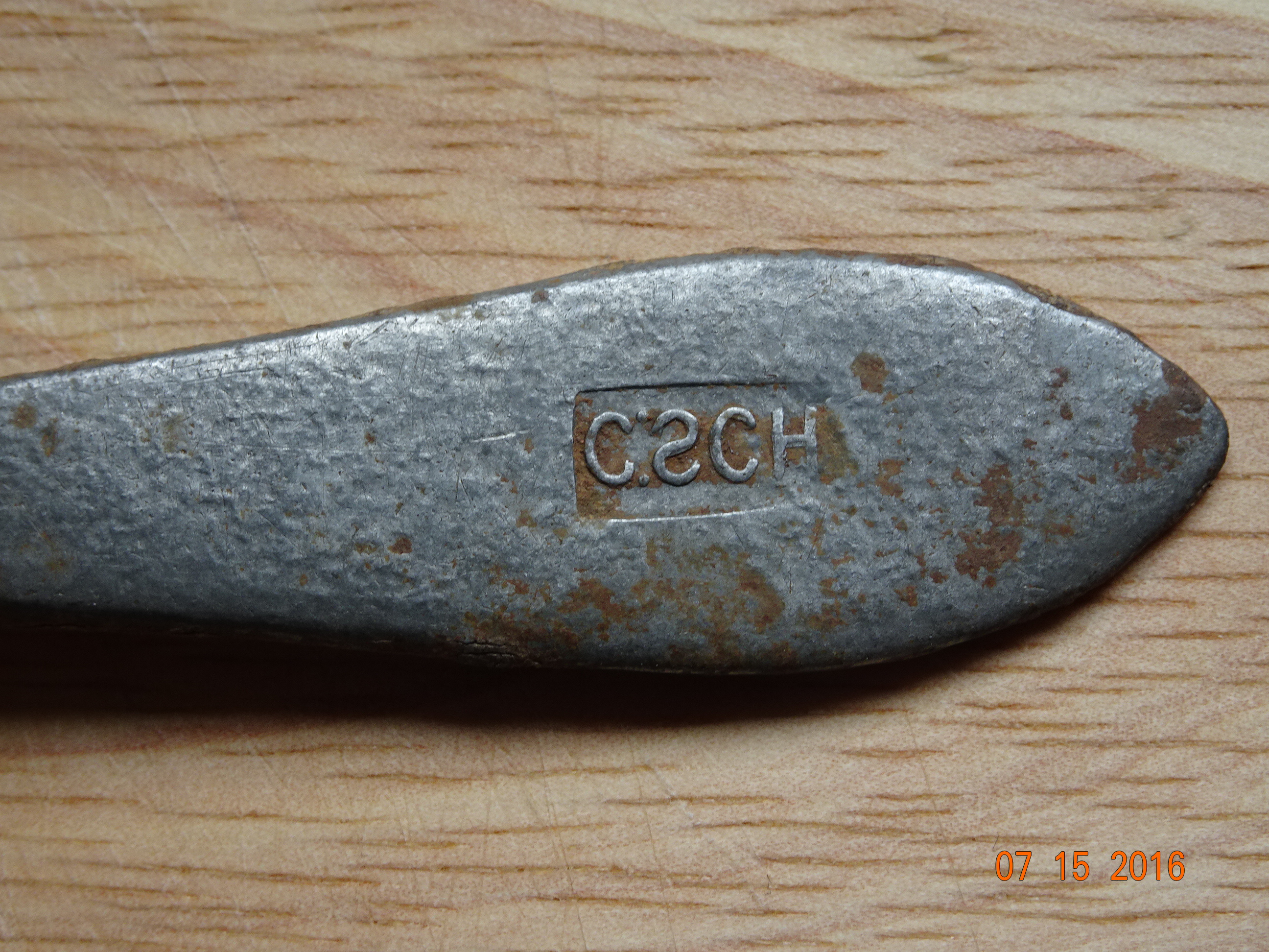 Der Löffel ist nicht aus Blei sondern aus Zinn und der Stempel ist der Hersteller.
