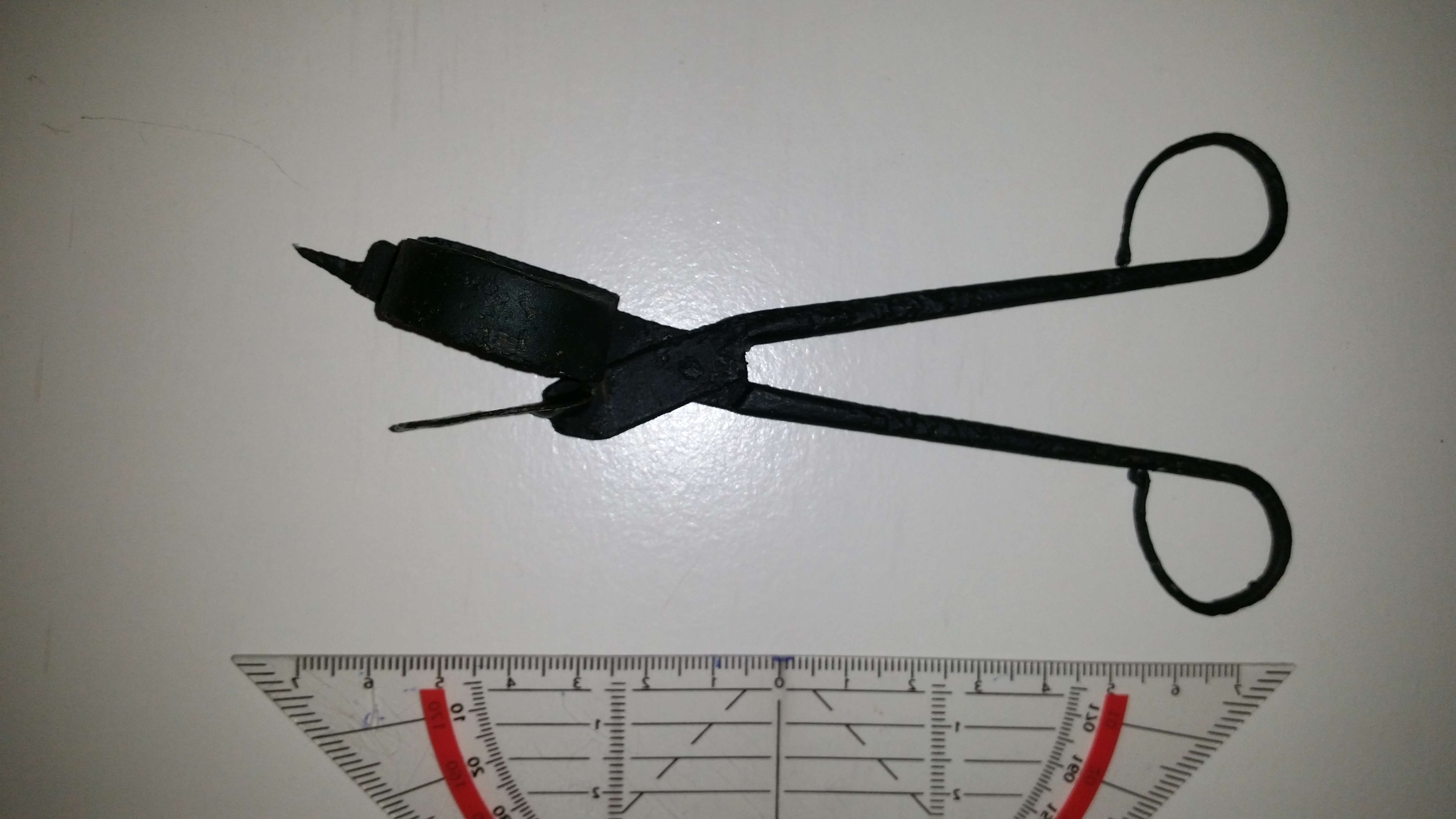 Das Teil hab ich neulich im Wald ersondelt. Zuerst konnte ich damit nichts anfangen. Hab es dann doch herausbekommen. Es ist eine Dochtschere. Diese wurden früher benutzt um bei einer brennenden Kerze den Docht zu kürzen. Da der Docht im Prinzip damals nicht brennbar war, musste man den Docht öfters nachschneiden um Rußbildung und eine zu große Flamme zu vermeiden.