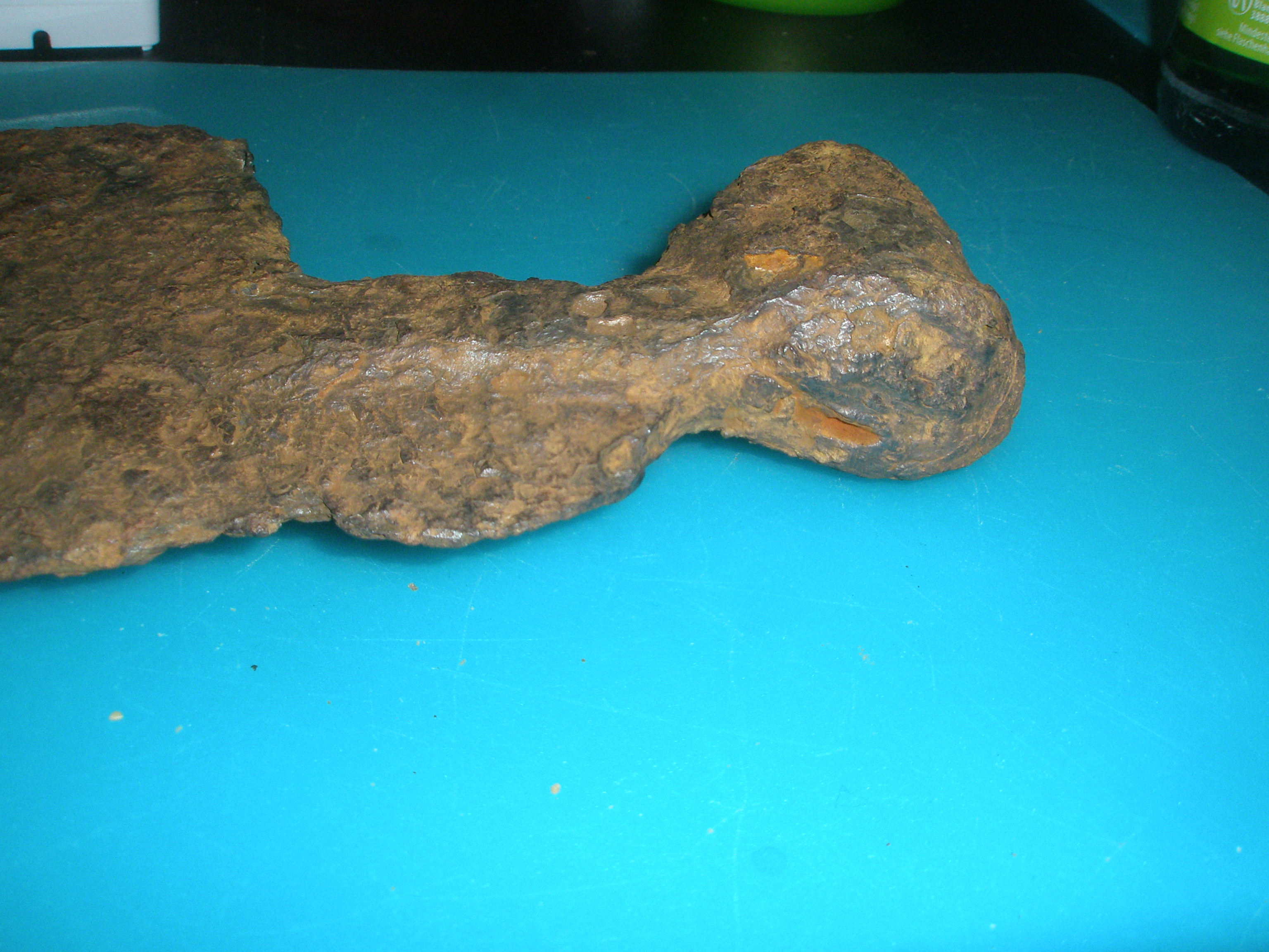 Hallo,hätte zu den beiden Teilen gerne eure Meinung! ich denk mal die Axt ist aus dem 12.-14.Jahrhundert. Das Blatt ist etwa 12cm breit.Kurioser Weise ist das Loch für den Axtstiel oben geschlossen. Das andere Teil ist etwa so gross wie ein 1 euro stück, ich vermute mal eine Art Scharnier für irgendwas.