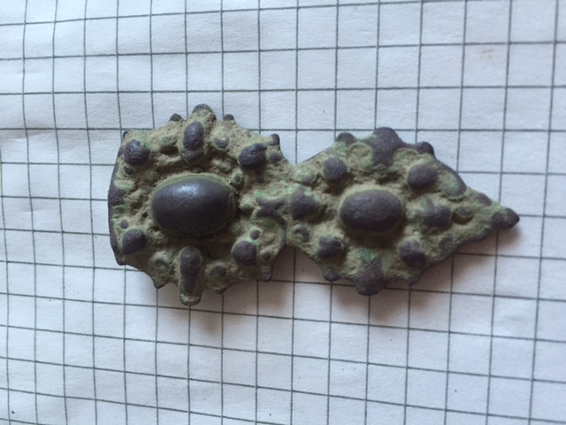 Sie ist 5 cm lang ca 2,7 cm Breit und ich denke mal sie ist aus Bronze