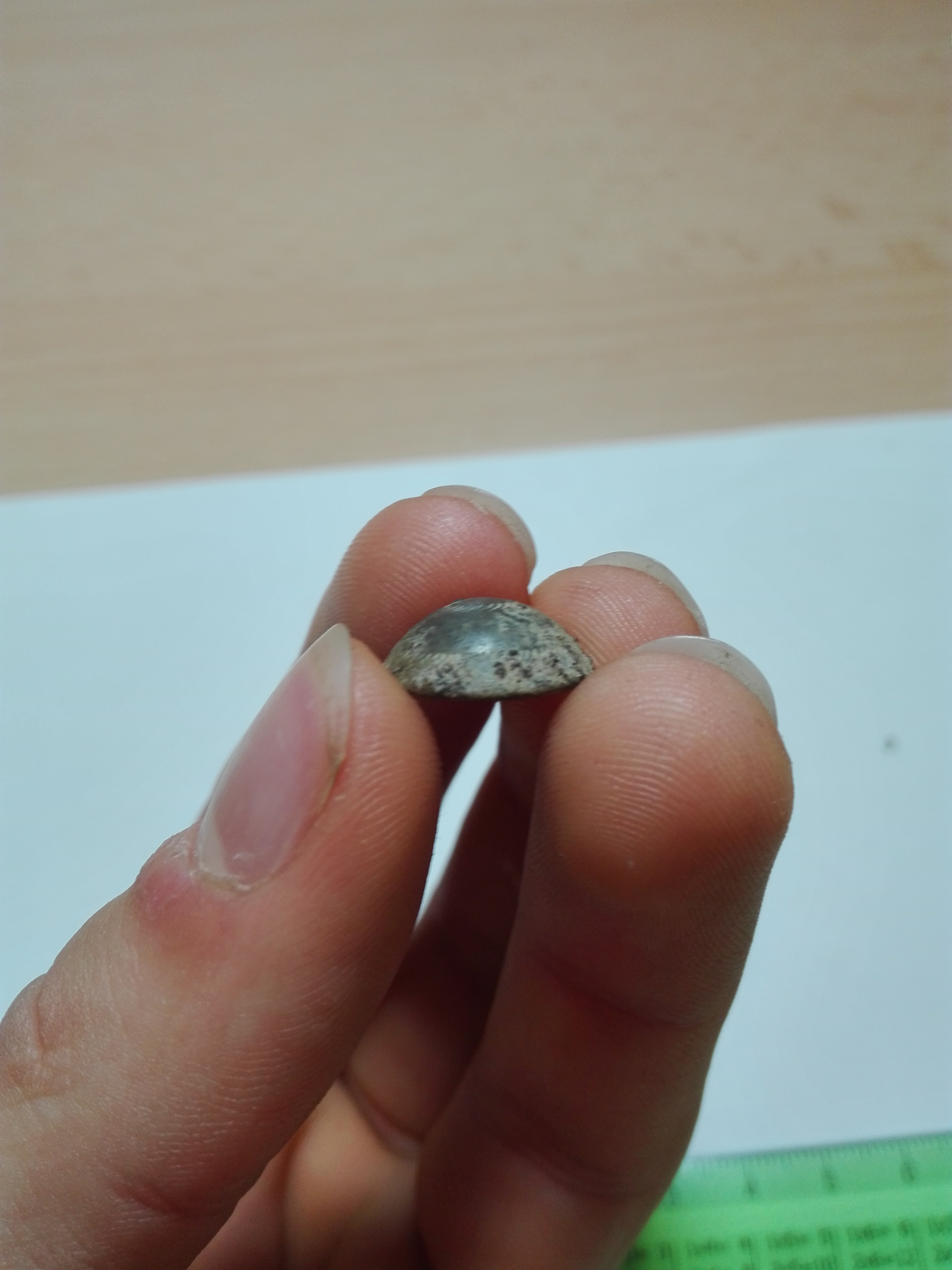 Als ich mal wieder auf den Acker unterwegs war, habe ich Das gefunden. Ich dachte zuerst es ist eine keltische Münze aber nach dem Reinigen nicht mehr. Es ist am Rand mit dem gleichen Strichmuster versehen wie oben. Doch ein alter Knopf kann es auch nicht sein, da es kein Zeichen einer Öse gibt.