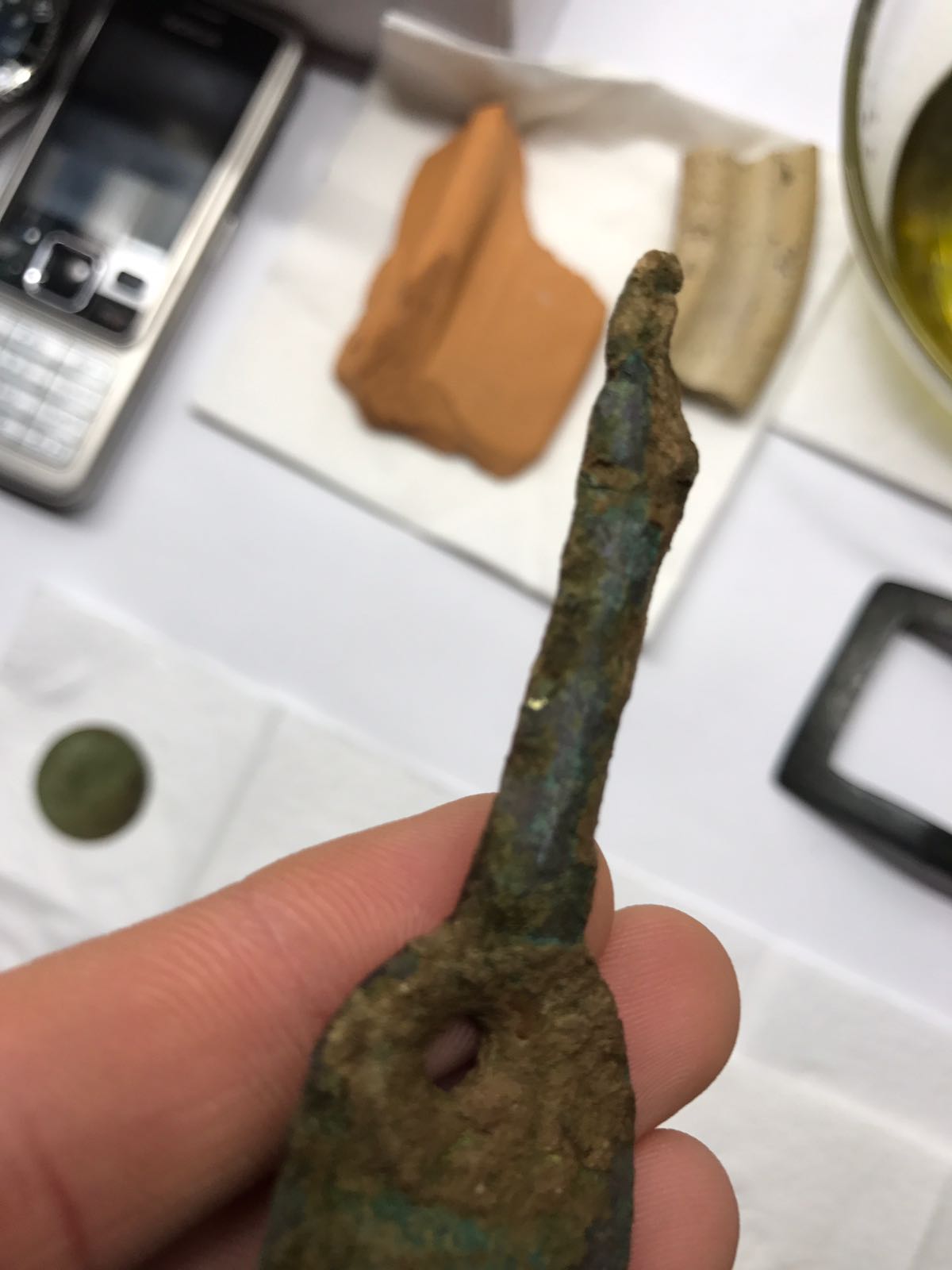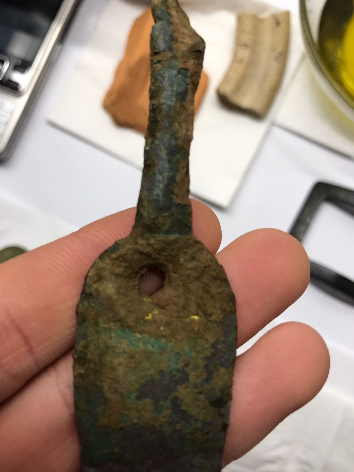 Mit der Grabehacke können Fundstücke schnell und trotzdem schonend geborgen werden. Der Detektor muß während des Ausgrabevorgangs nicht abgelegt werden, denn die Gewichtsverteilung der kleinen Spitzhacke ermöglicht ein zügiges einhändiges Ausgraben des Fundstücks.