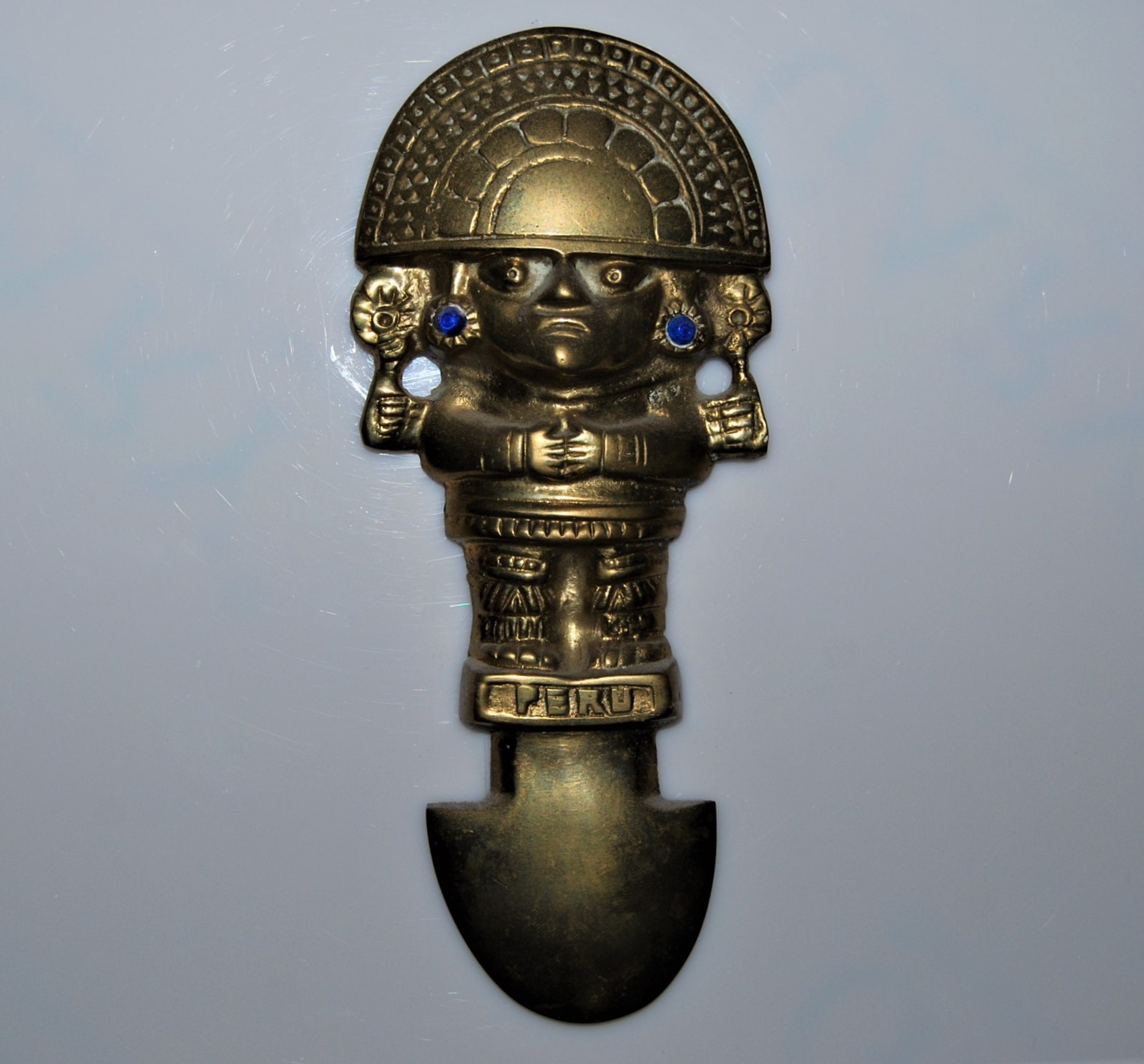 Ist definitiv die Nachbildung eines "Tumi", eines Kupfer-/Bronze-/Obsidian-/Goldmessers, mit dem die Inka in den peruanischen Anden den Menschenopfern das Herz aus der Brust geschnitten haben.