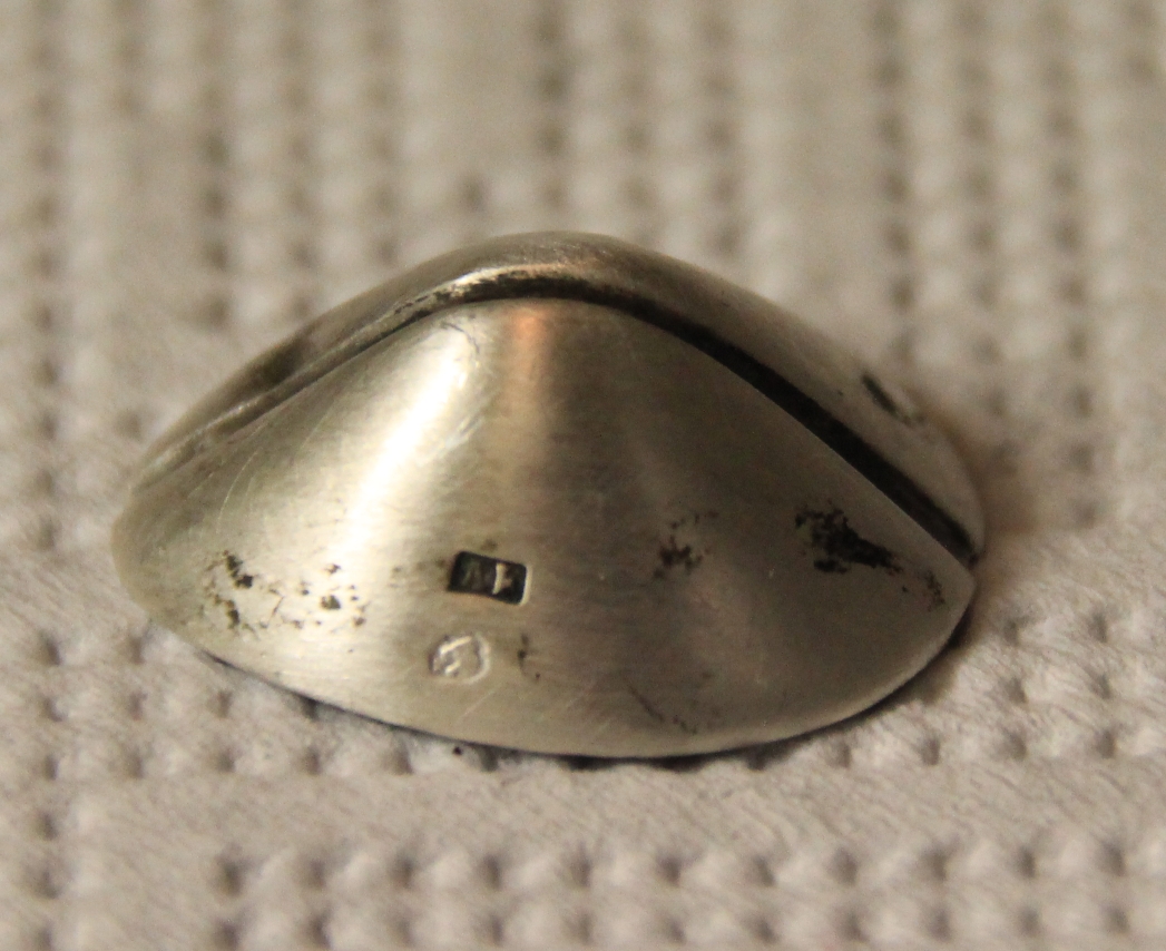 Knopf: Weiß jemand etwas zu dem Knopf? Es ist etwas eingraviert, irgendwelche Zahlen oder ein Code, lässt sich aber schlecht lesen.