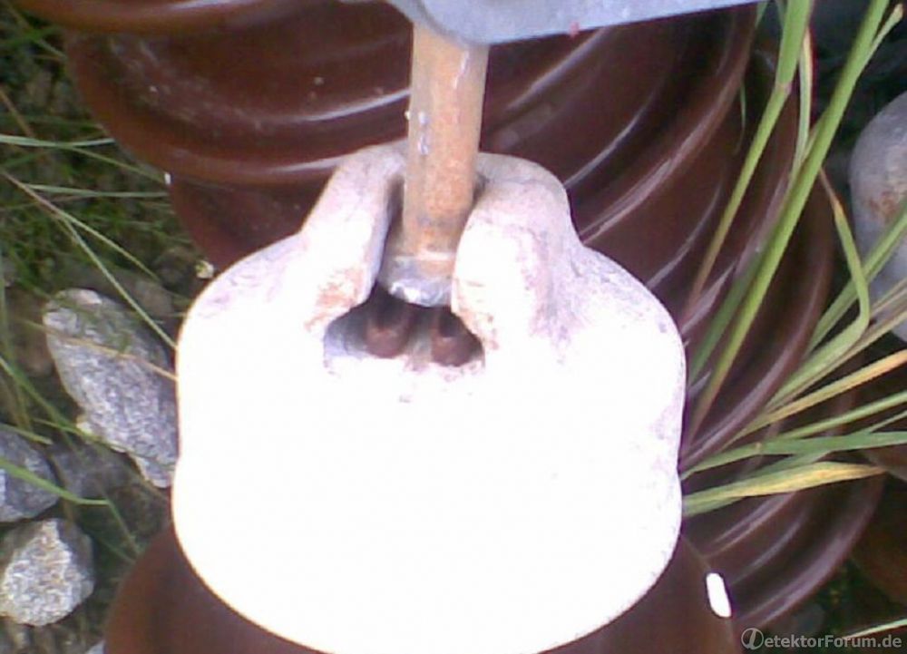 Zu der Klammer, die sitzt zwischen Isolierkörper und der Halterung die zur Hauptleitung geht. Bei Starkstromleitungen.