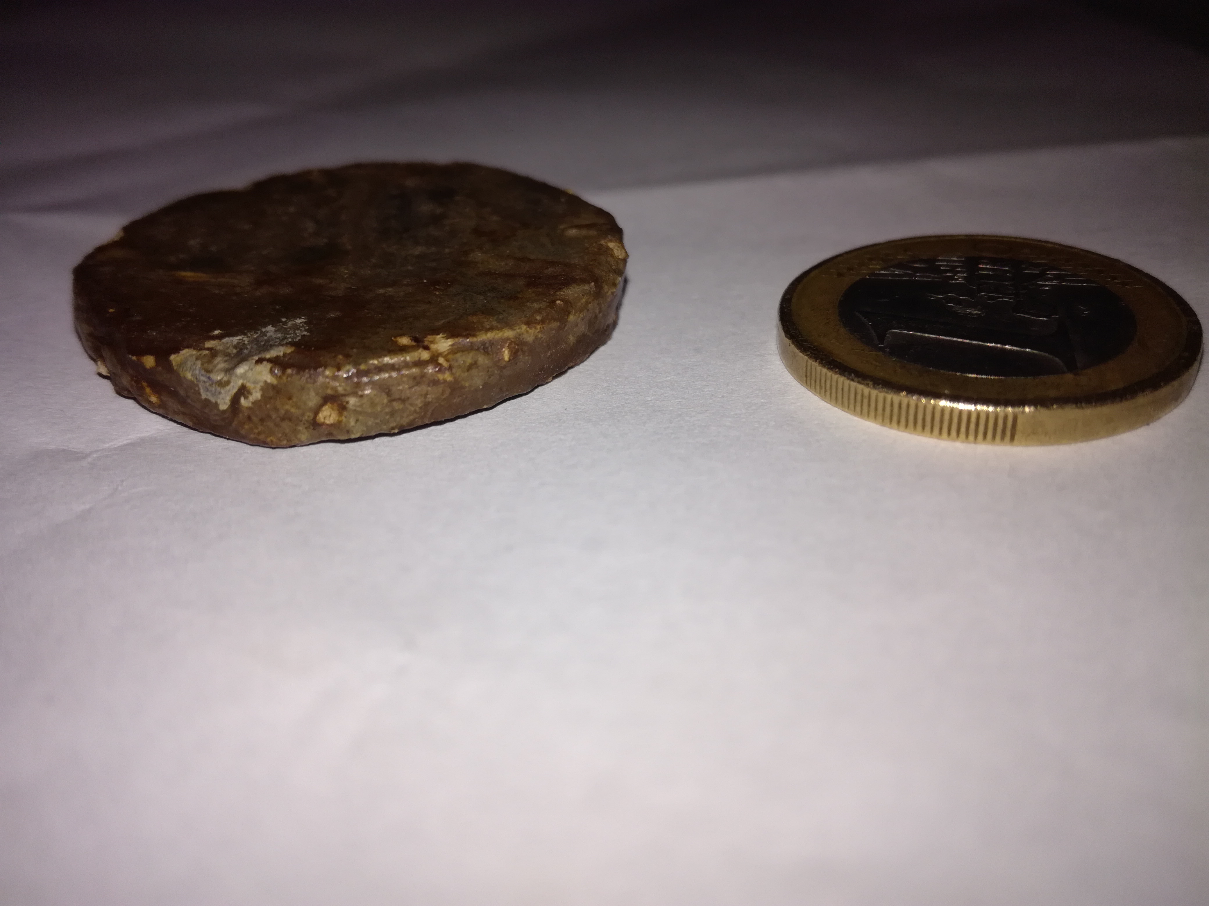 Das gute stück wiegt 44g und misst einen durchmesser von 3 cm und höhe 0,5