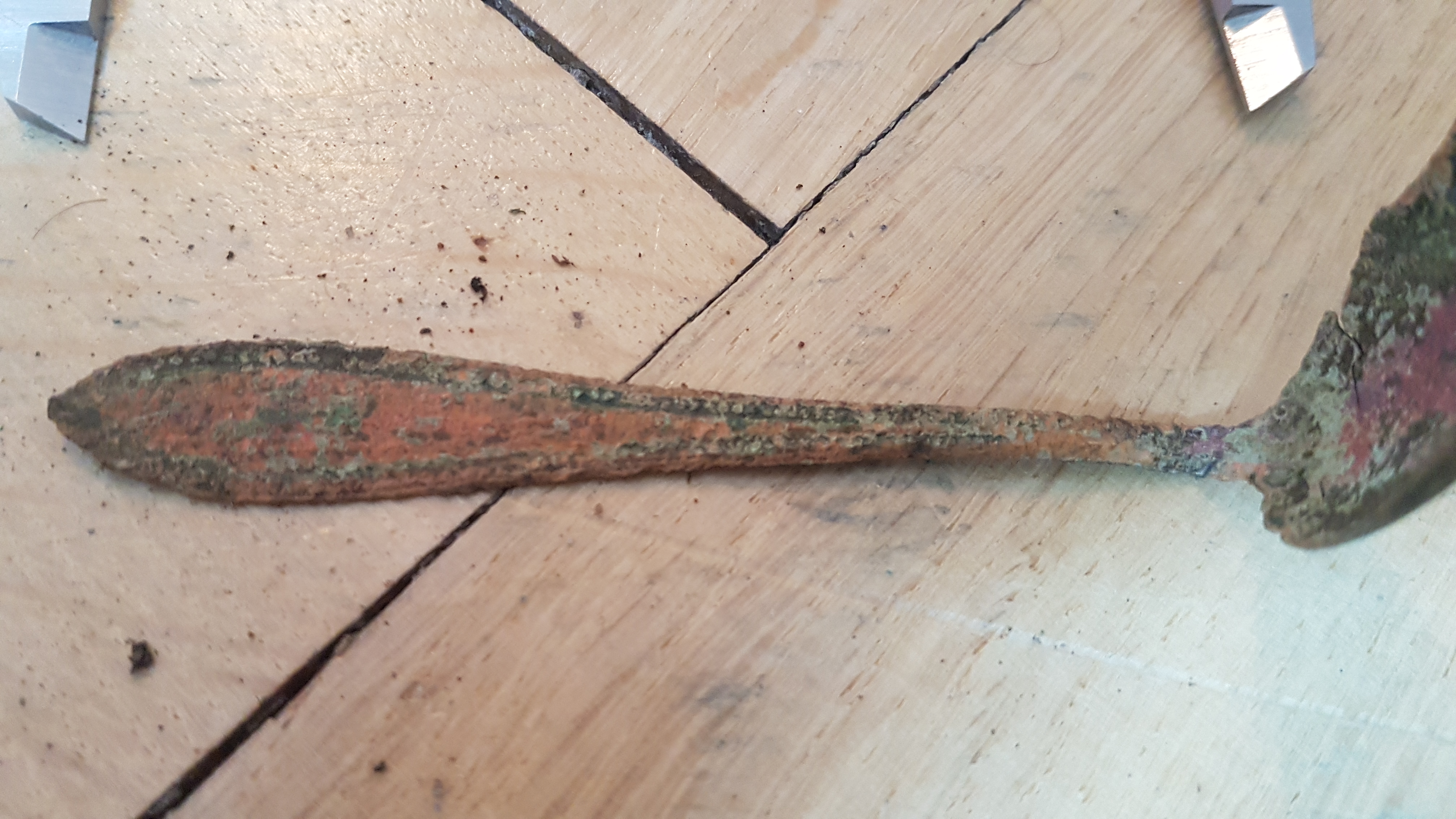 Den Knopf im 2. Und 3. Bild habe ich auch schon 2 mal gefunden, der kommt so aus dem 17. Jahrhundert. Der Löffel besteht wahrscheinlich aus Messing und kommt aus dem späten 19. Jahrhundert.