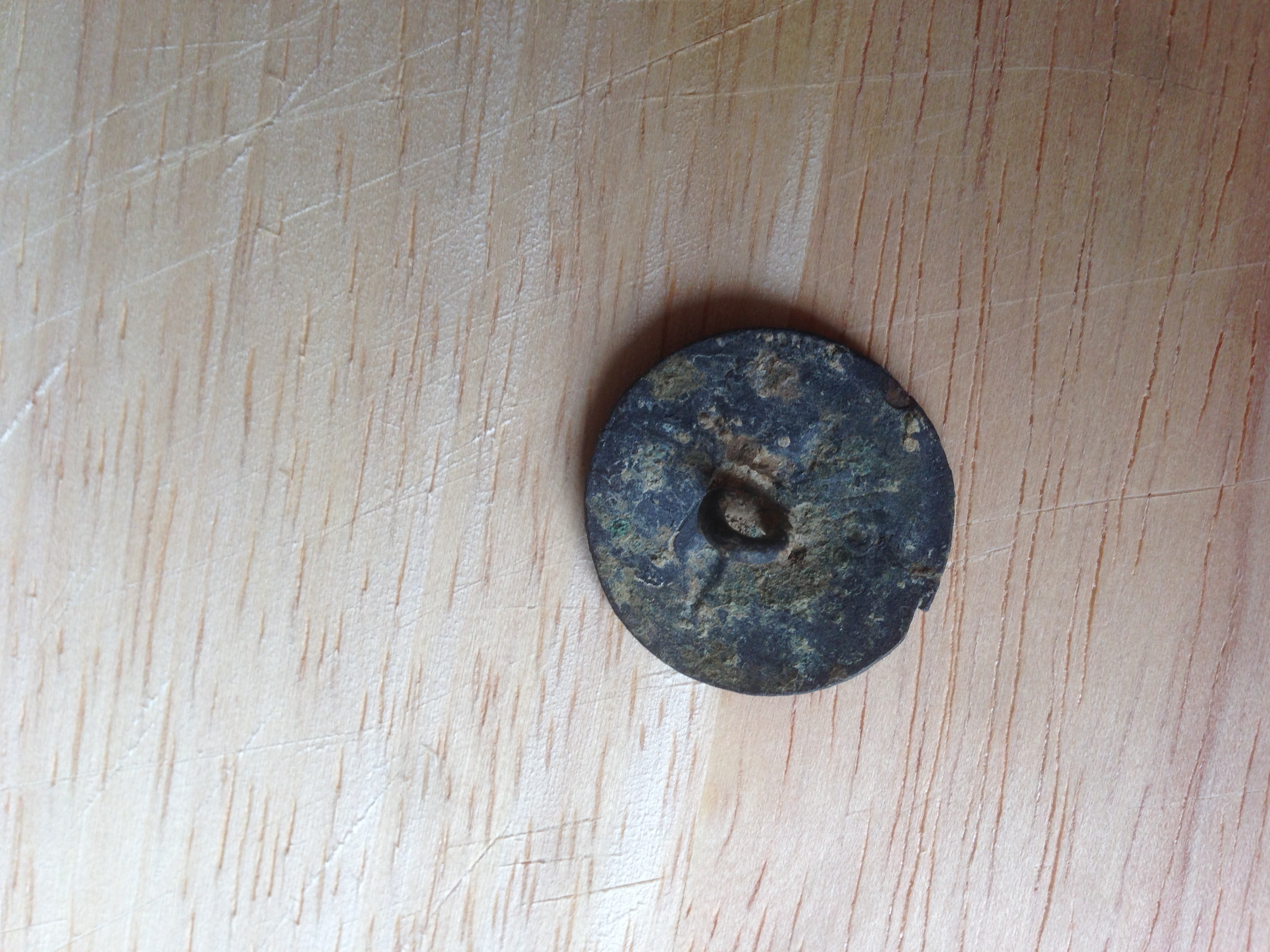 Hab bei Gartenarbeiten dieses Knöpfchen hier gefunden. Vielleicht kann jemand von euch etwas zur Herkunft beitragen. Meine Internetrecherche blieb leider erfolglos.