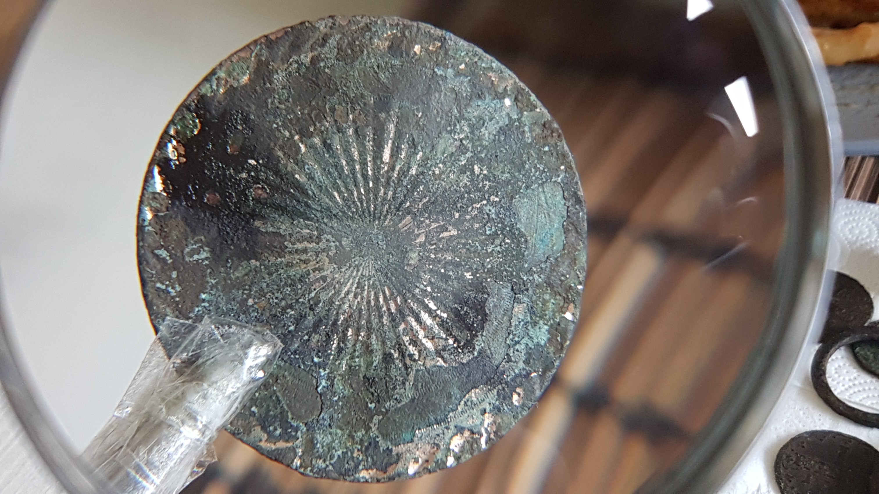 Gut dann werd ich mich vorsichtig an den großen Knopf wagen und ein bisschen Patina entfernen.