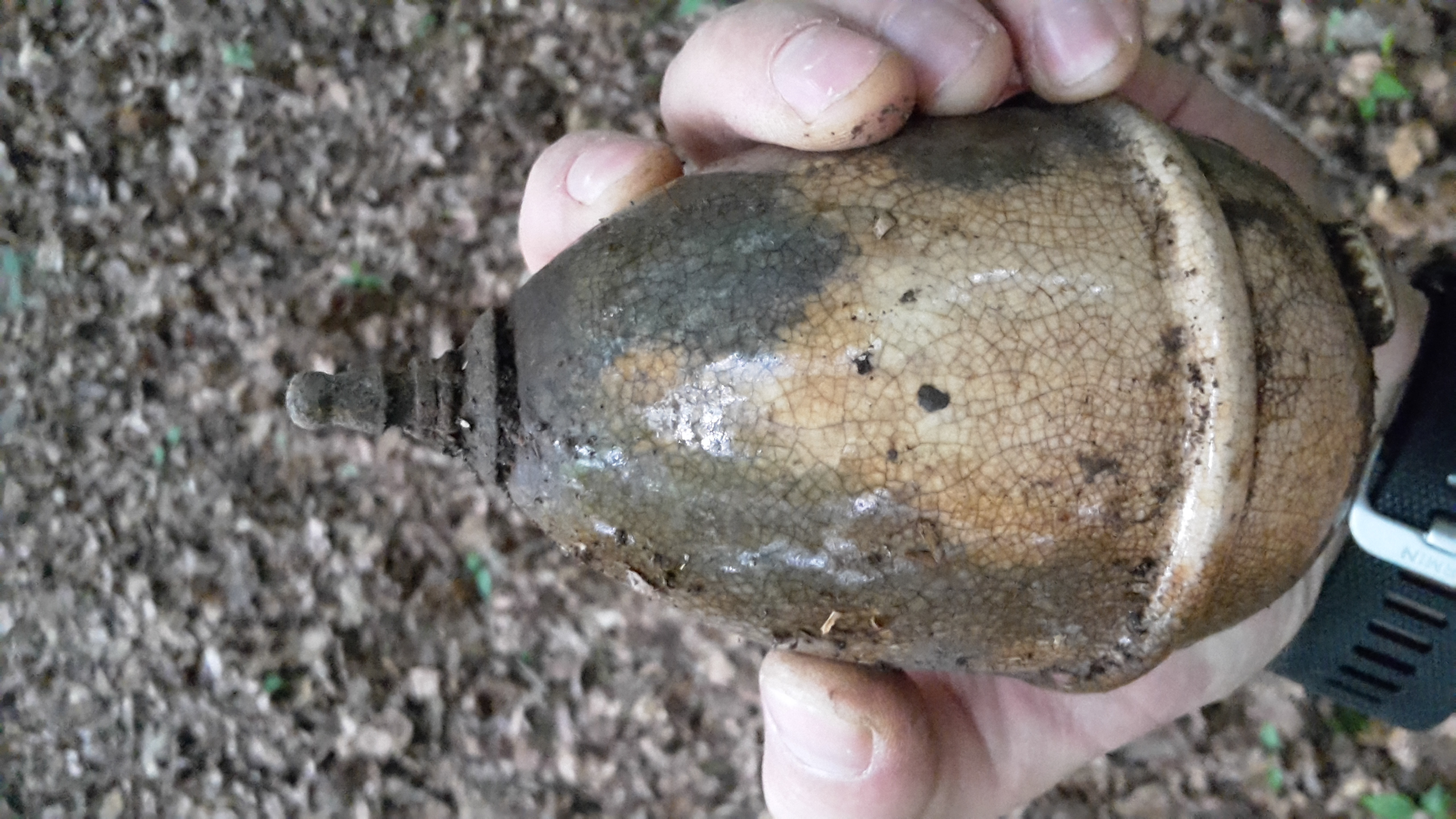Habe heute nen komischen Fund gemacht, dachte natürlich zuerst an eine Granate oderso, aber die waren ja nicht so hübsch und aus Keramik, oder Porzellan. Das Teil hat ne art Rädchen am Bauch es war auch ziemlich schwer für die Größe.Naja habe es aber wieder vergraben da mir das Ei nicht so geheuer war. Vielleicht hat ja einer ne Ahnung was das sein könnte.