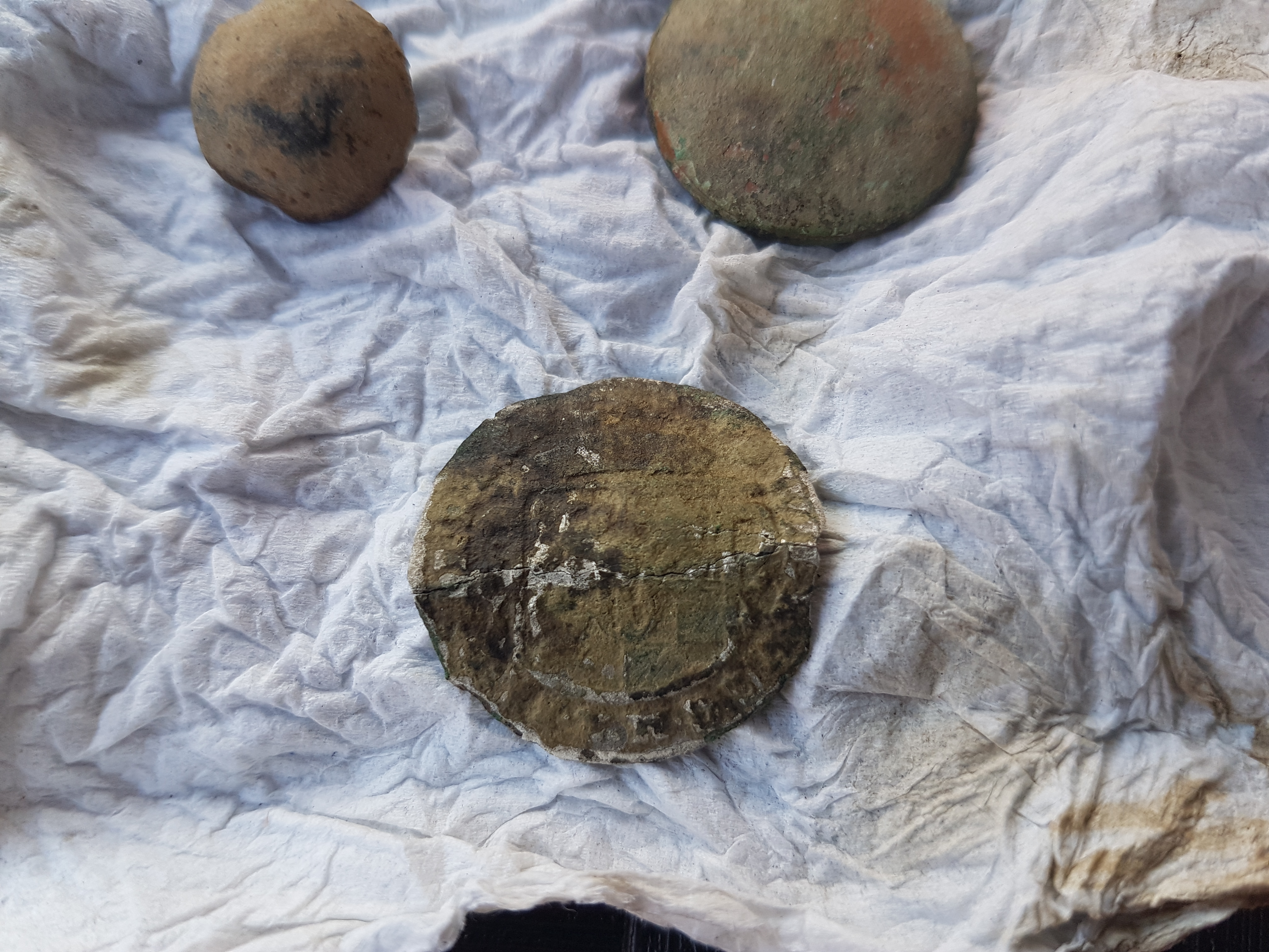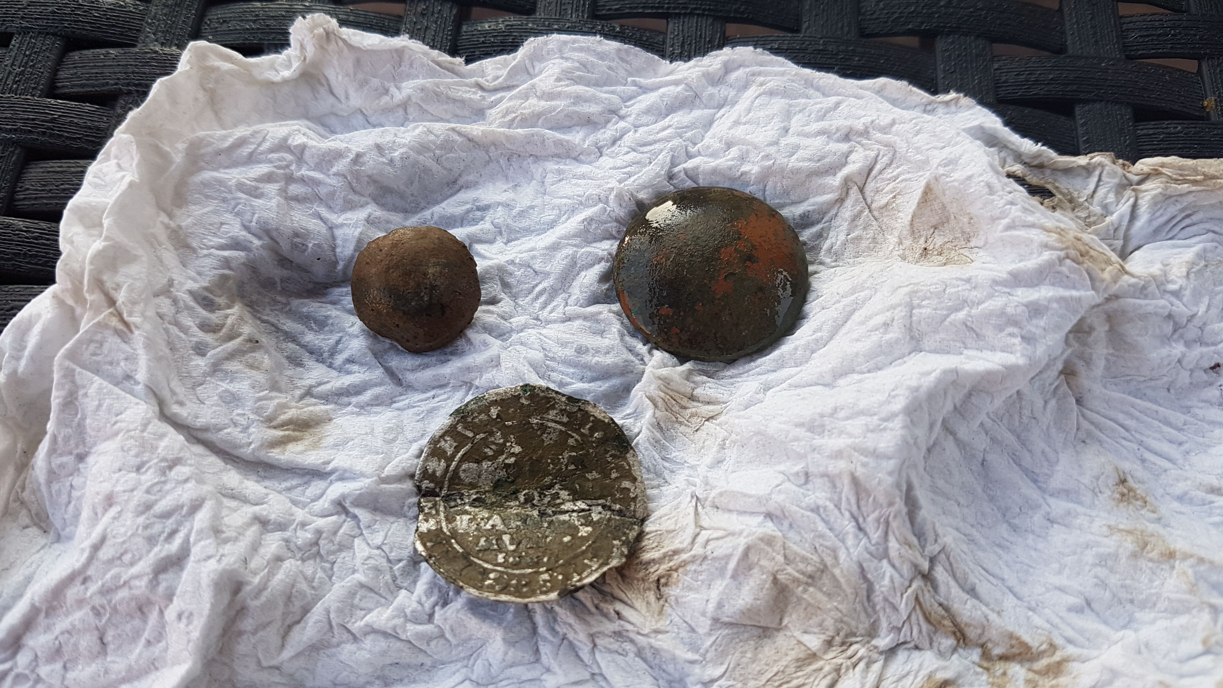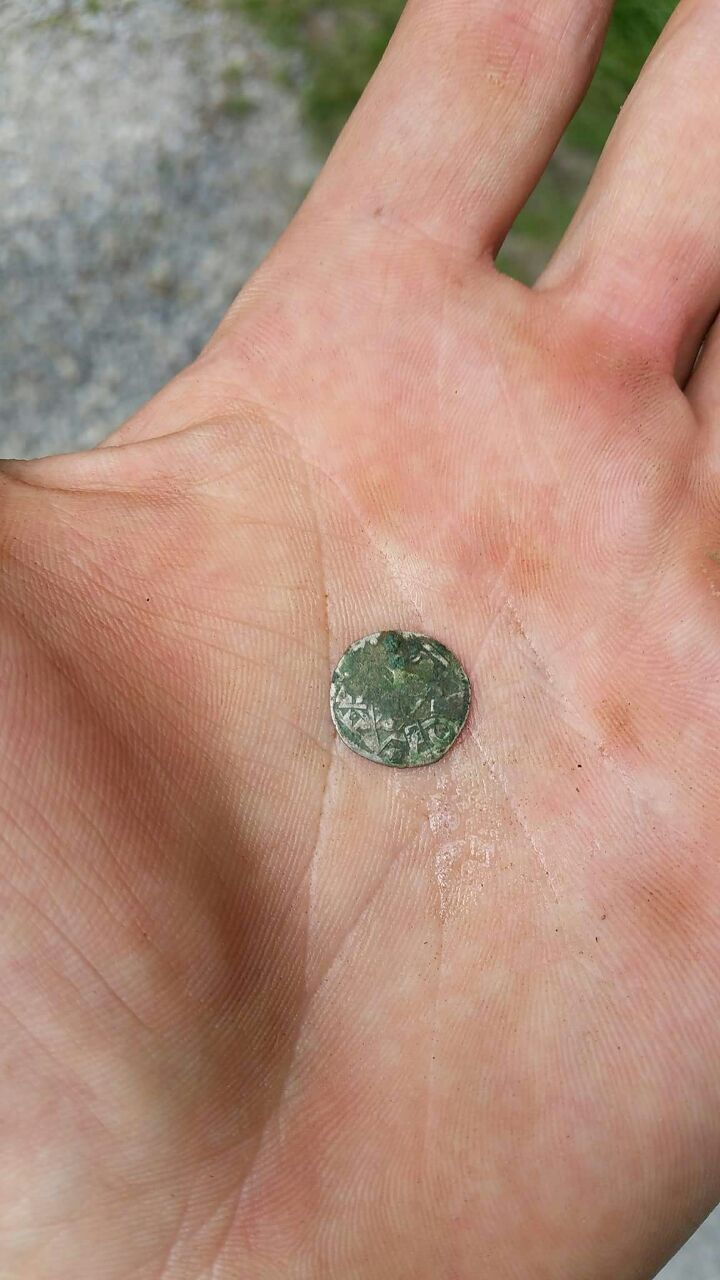 Pille flüssig machen, Deckel von Gurkenglas nehmen und legst Münze ein. Sanfst mit Zahnstocher Münze säubern.