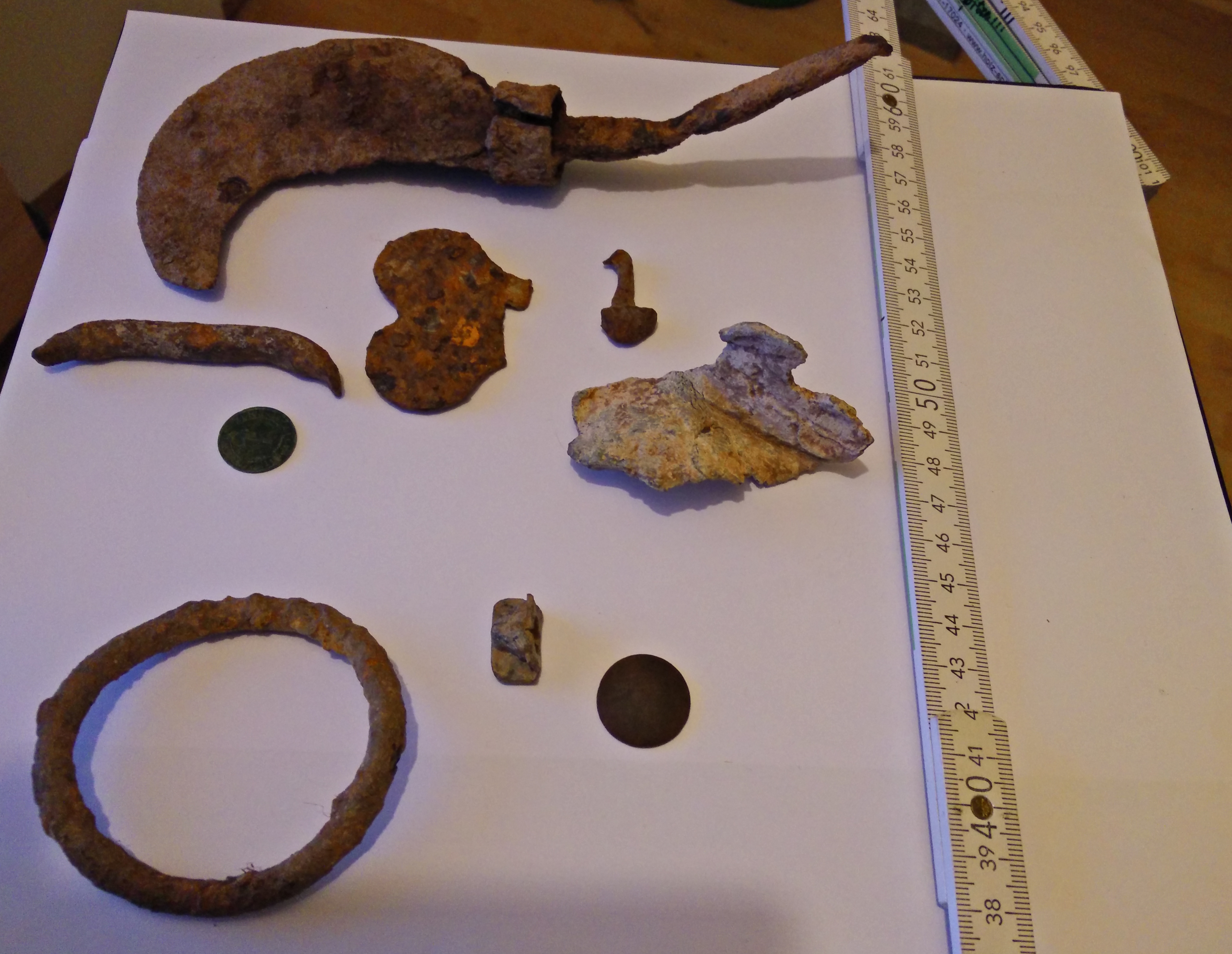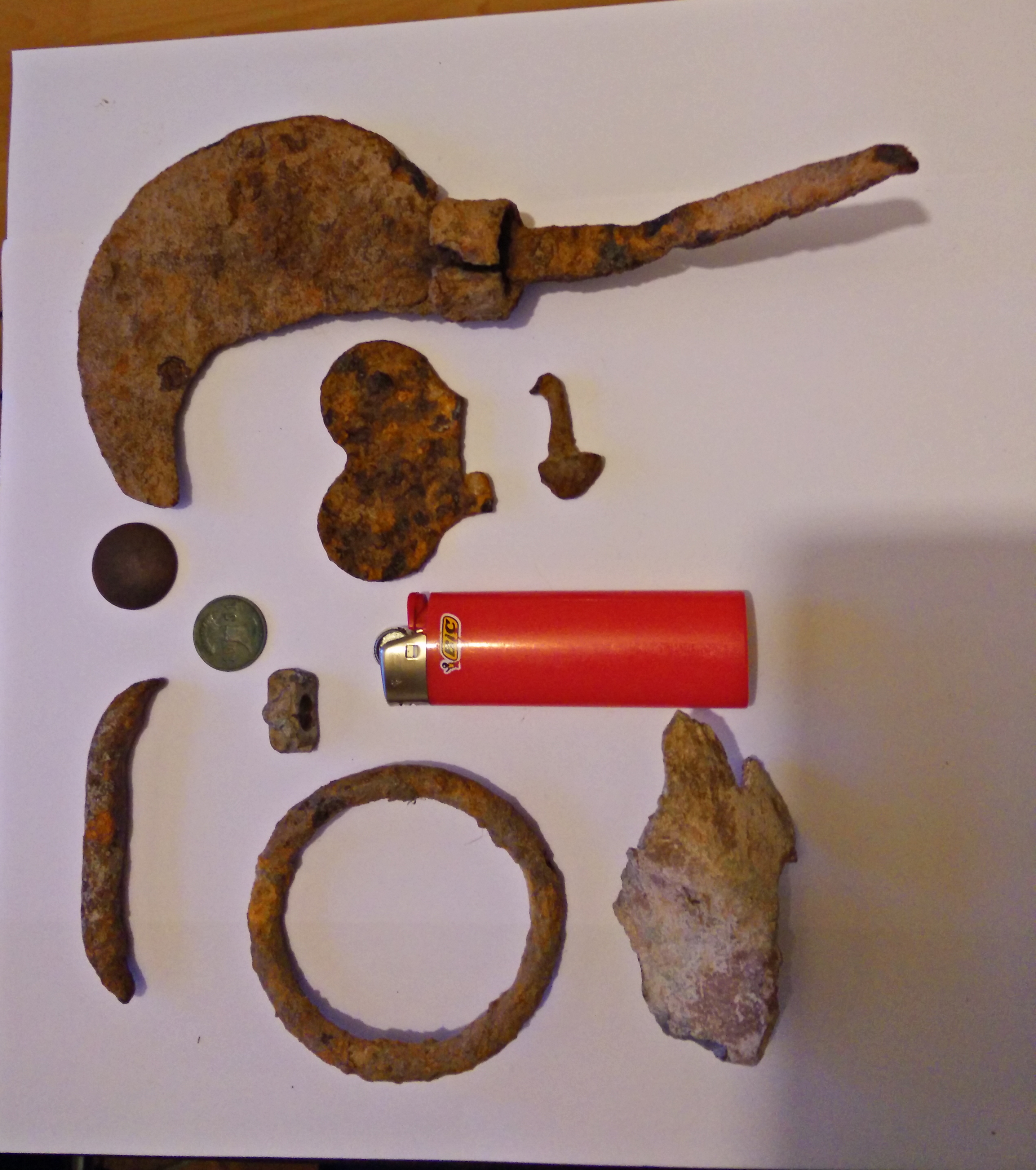 Ein Wahrscheinlich Neuzeitlicher Knopf, und altes Waldwerkzeug vermute ich,
