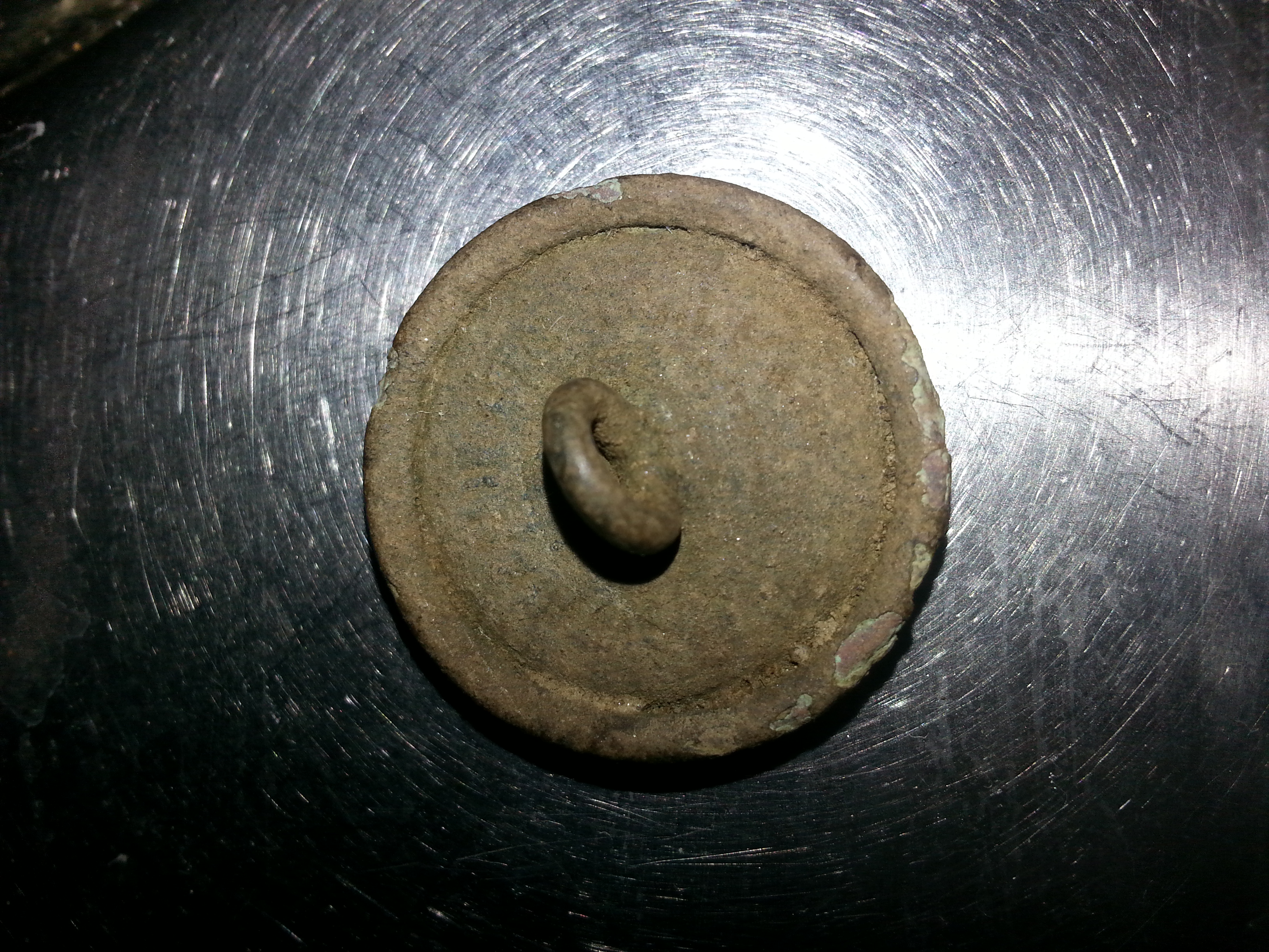 - Knopf: mit Inschrift Rückseite, leider nicht lesbar